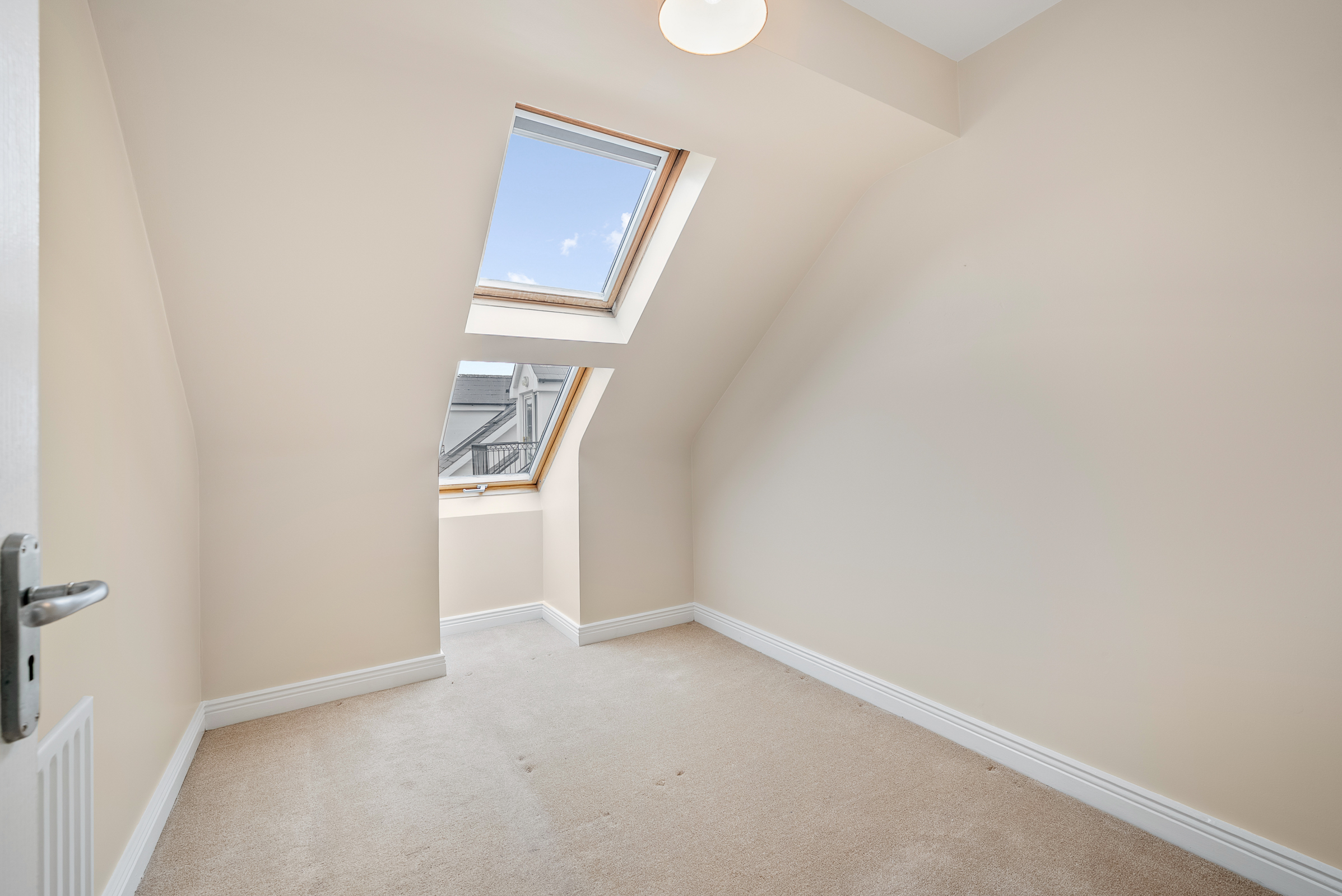 Another double bedroom that has a Velux style window to the rear, neutral décor, centre light fitting, radiator, and carpet flooring