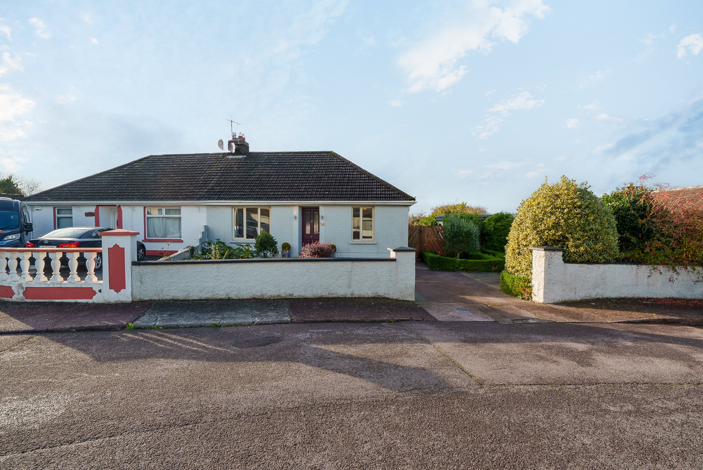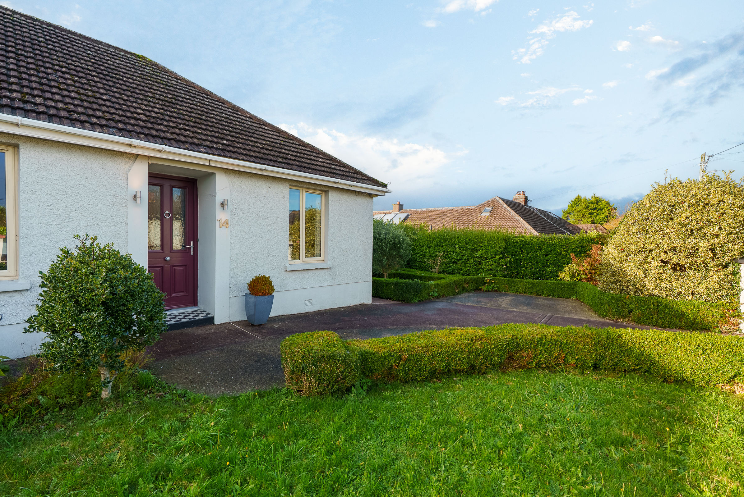 The front of the property is enclosed with block built walls. There is a concrete driveway to accommodate off street parking, and beautifully manicured garden areas which are laid to lawn with a selection of mature shrubs and plants.