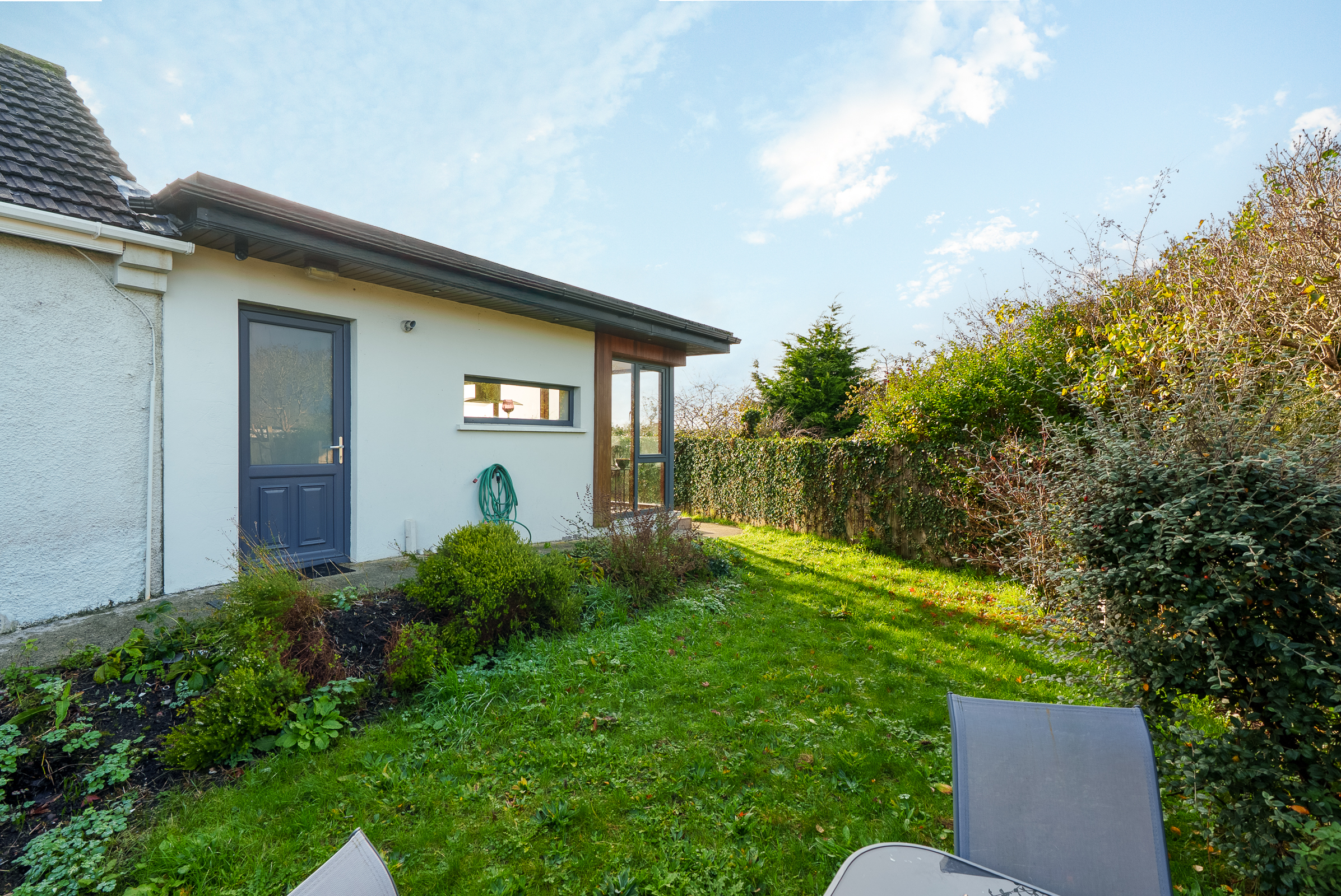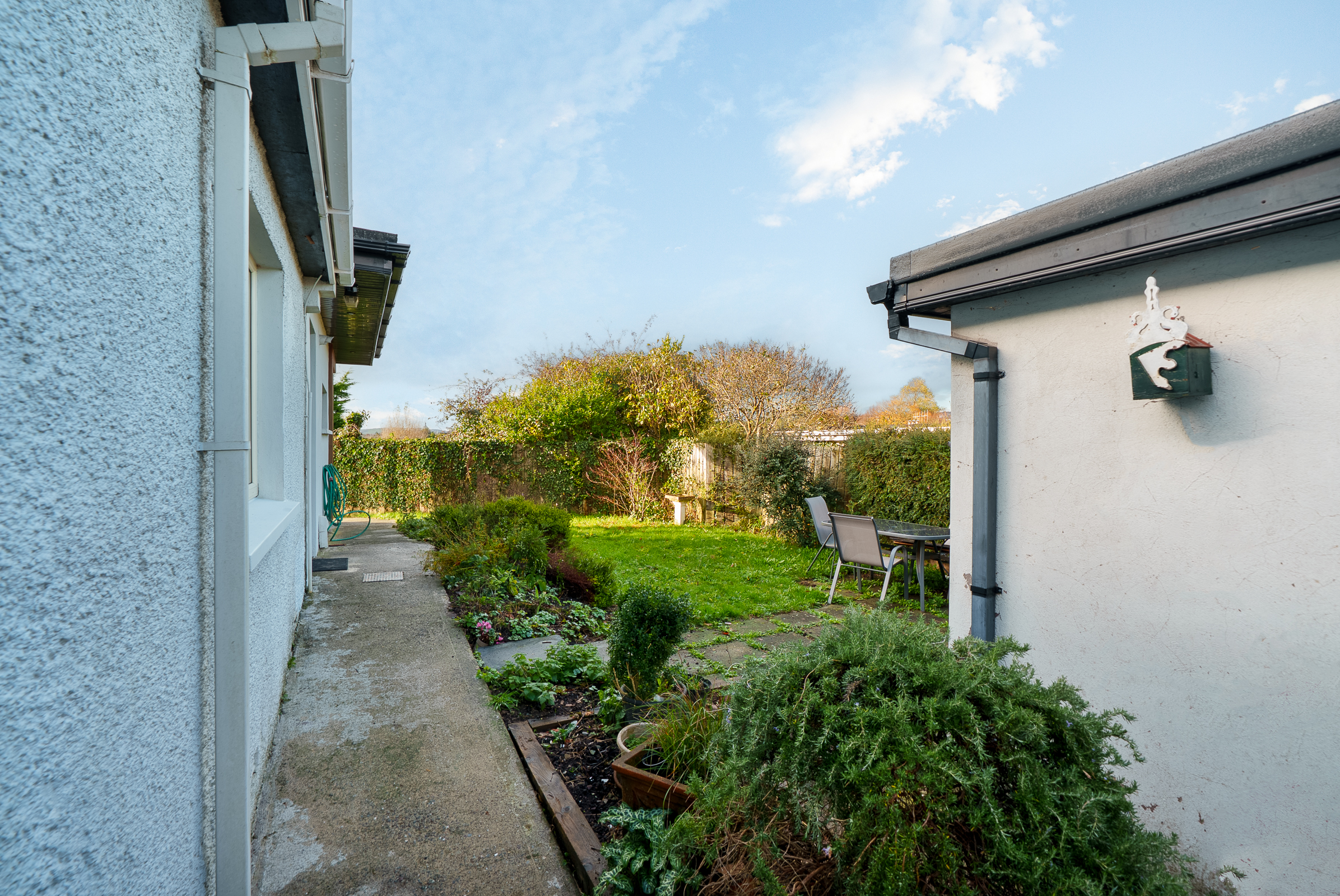 The rear of the property boasts a sunny west facing aspect. There is a superb patio area ideal for outdoor dining in the warmer months, and a flagstone path with gravel to either side leads to the garden area which wraps around to the side.