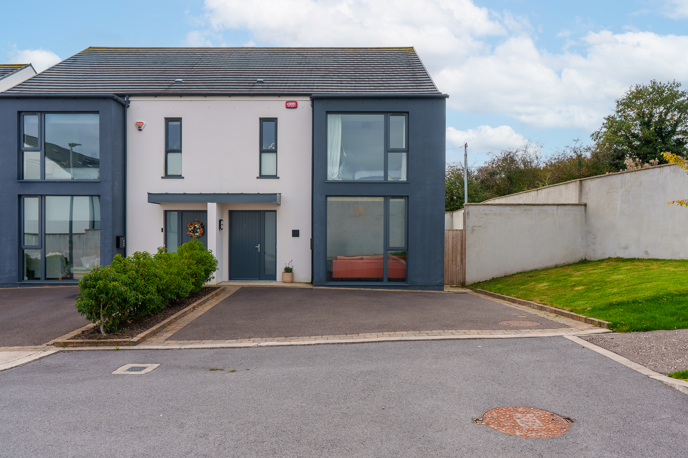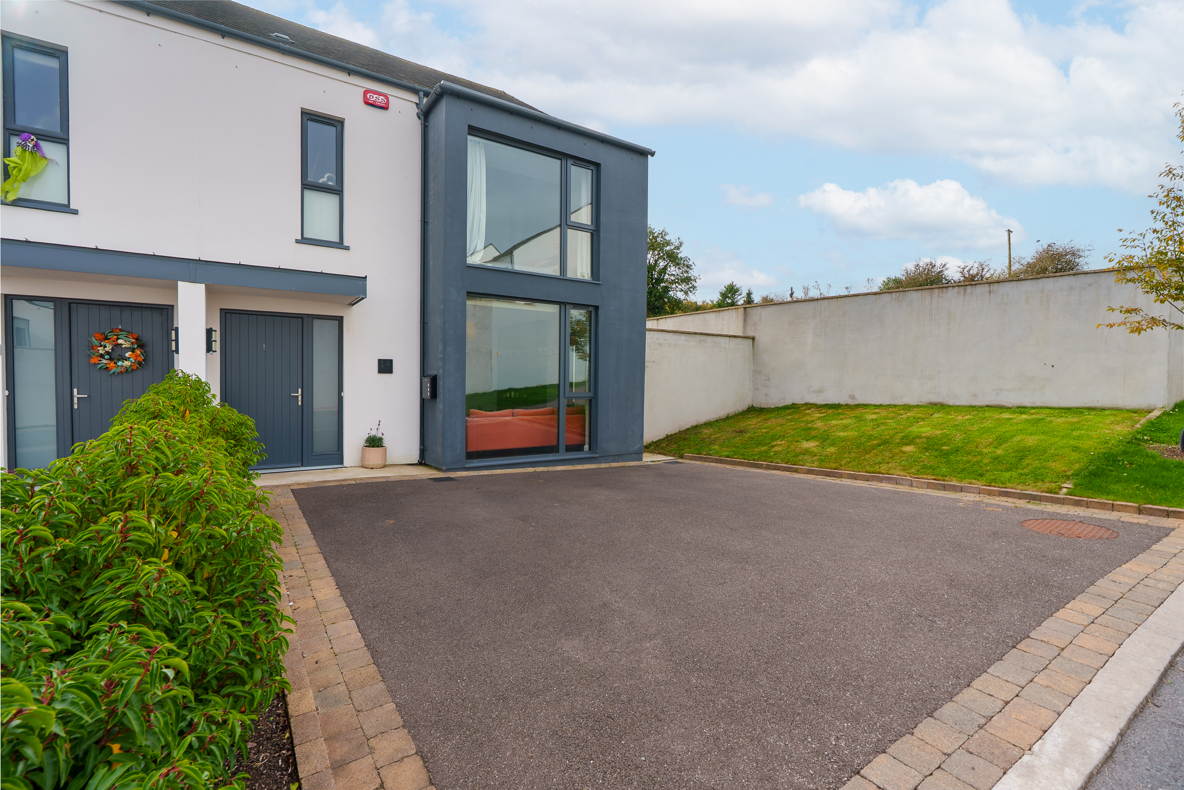 The front of the property has a large driveway, facilitating off street parking for three vehicles.