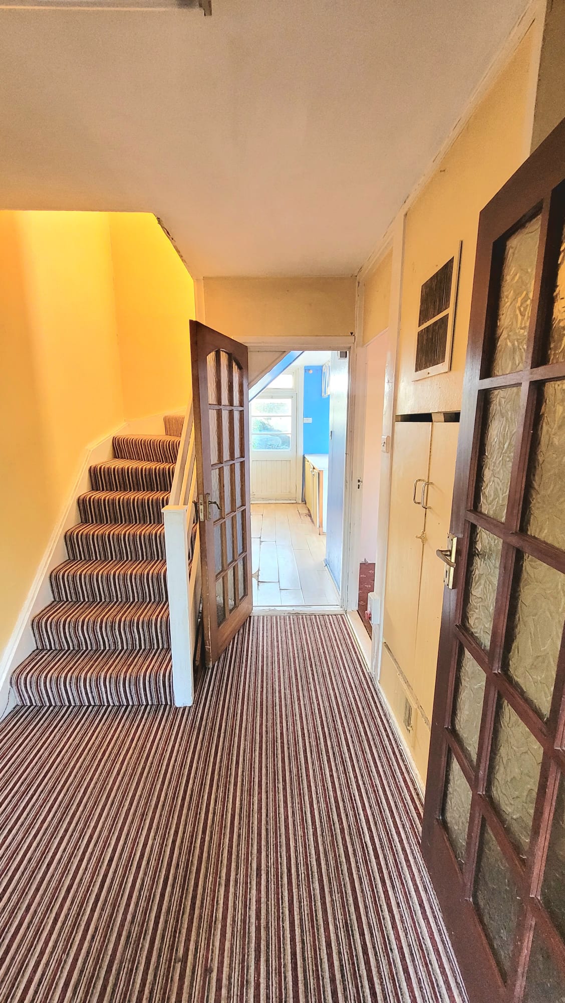 Accommodation consists of a porch, reception hallway, living room, and kitchen/dining area on the ground floor. Upstairs the property offers three bedrooms and a bathroom.
