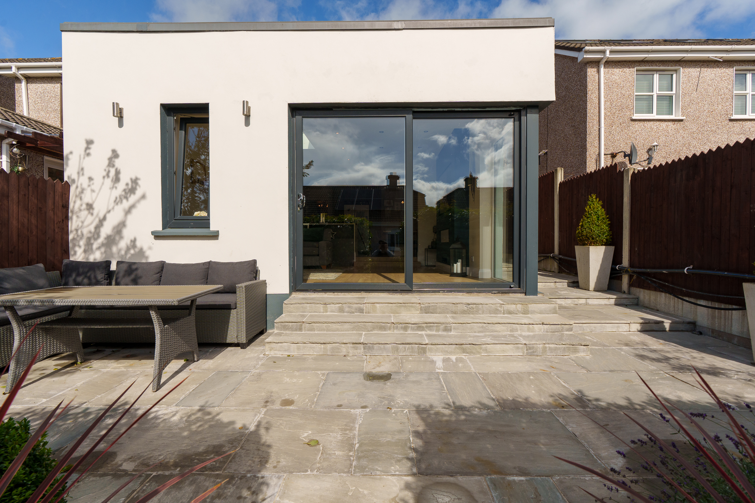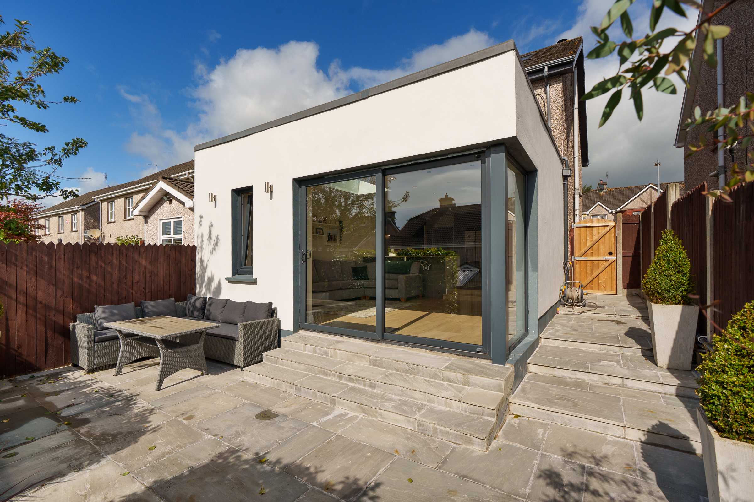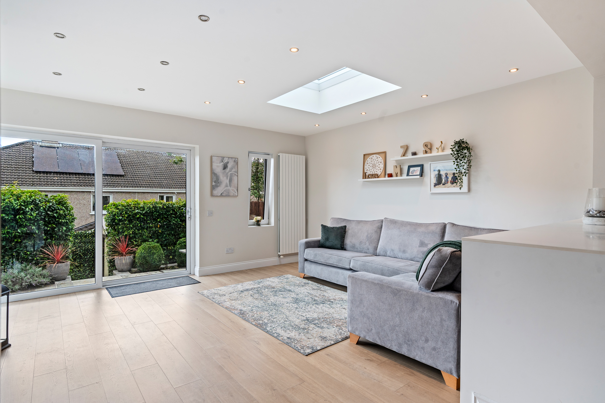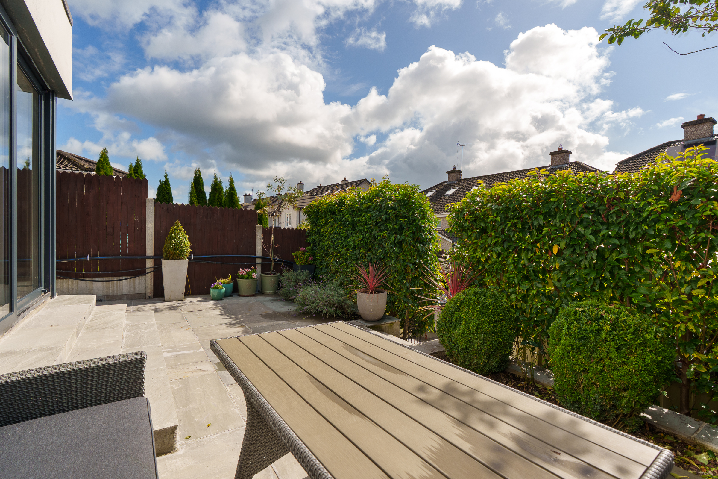 This spectacular rear extension is flooding with natural light owning to its mainly glazed rear wall, its strategic corner window and a Velux window. The room which is the heart of the home is finished with laminate timber flooring, recessed spot lighting and a bespoke media wall with an integrated electric fireplace. There are ten power points, and one television point and a sliding door from the room allows access to the rear patio area.