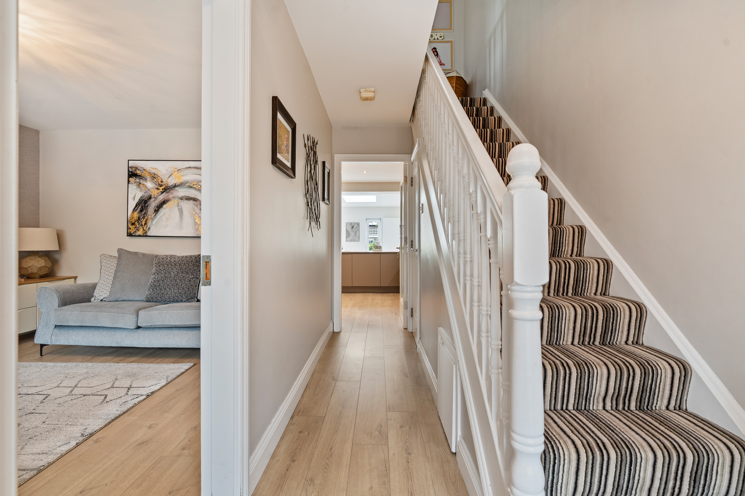 The highlight of the home is the modern architect-designed rear extension, which blends open-plan living with high-end finishes and an abundance of natural light. Perfect for entertaining or family life, the space flows effortlessly into the south facing landscaped tiered rear garden, featuring limestone patios at two levels, ideal for outdoor dining and relaxation. Inside, the property boasts three generously sized bedrooms, alongside a magnificent converted attic all finished with luxurious high end fixtures and fittings and an attractive colour palette.