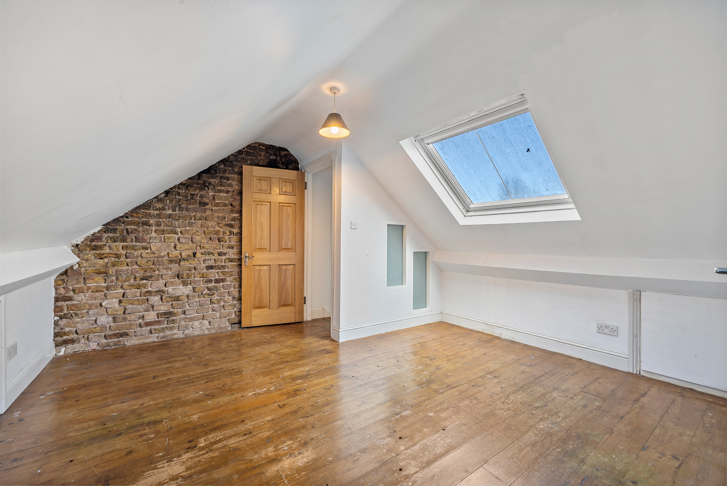 Carpet stairs lead to the attic conversion. This versatile and spacious room could easily act as a study or a home office. A feature stone wall, timber flooring, access to the eaves of the attic, window to the rear, and a door allowing access to an en suite.