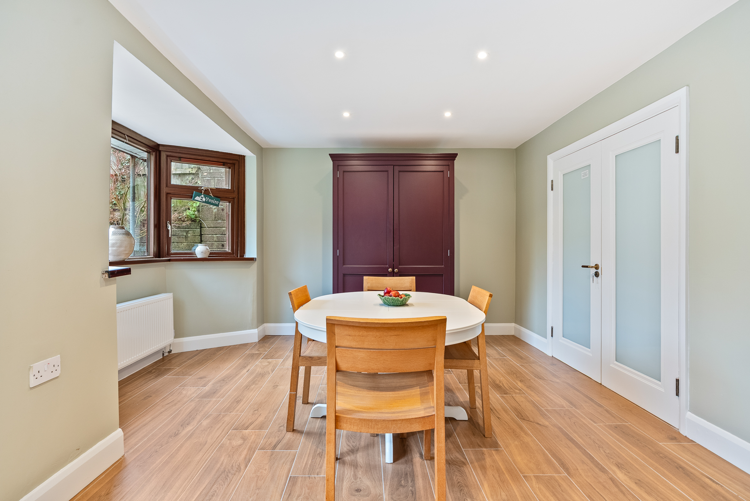 Located on the ground floor, this versatile room could serve a multitude of uses either as a home office or a single fourth bedroom. The room has a bay window including a venetian blind and a curtain rail. There is high quality solid timber flooring, one centre light piece, one radiator, and four power points.