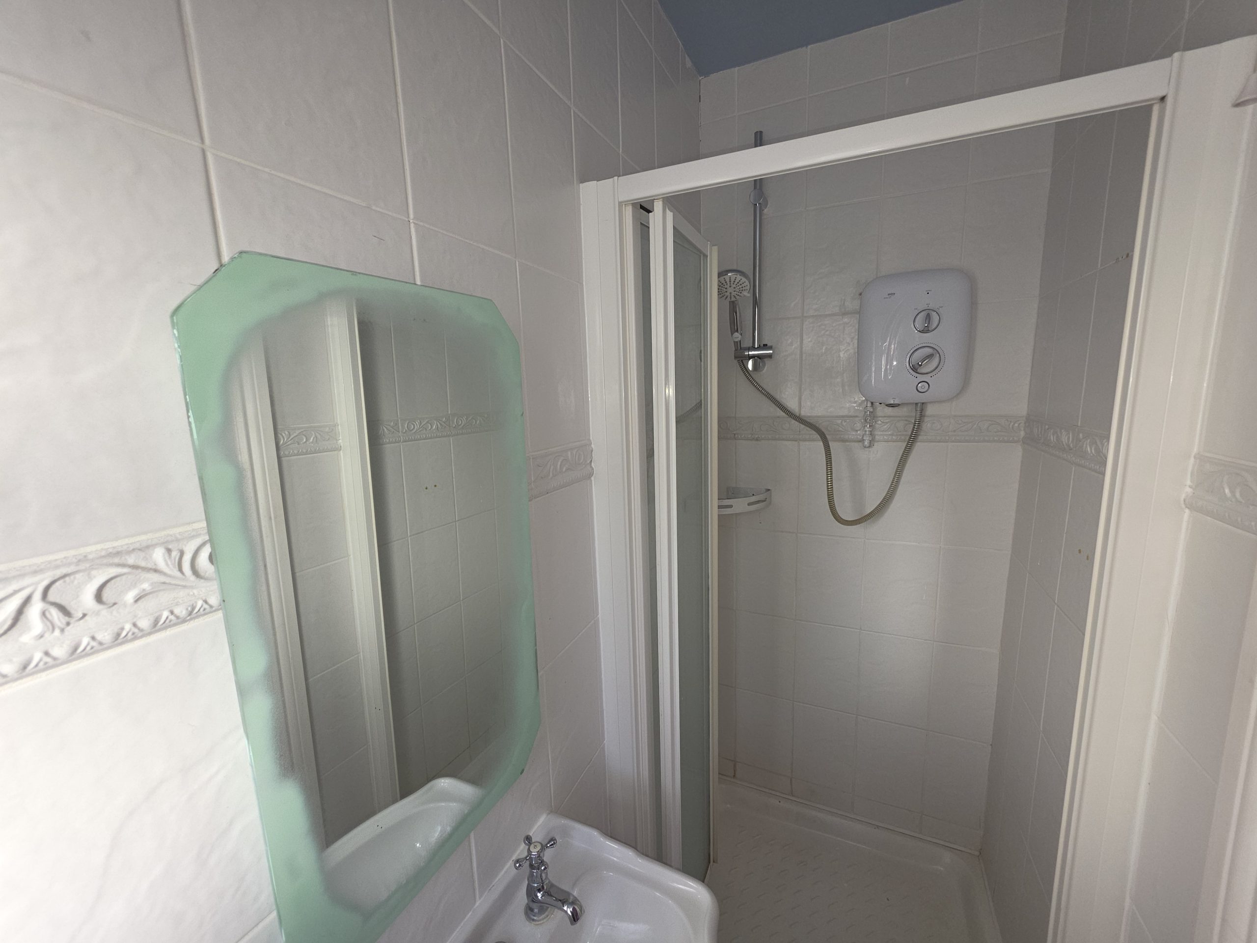 The ensuite bathroom features a three piece suite including a shower cubicle incorporating a Mira Elite Q2 electric shower, one centre light piece, wall tiling, tongued and grooved timber flooring, one wall-mounted radiator and one window to the rear of the property.