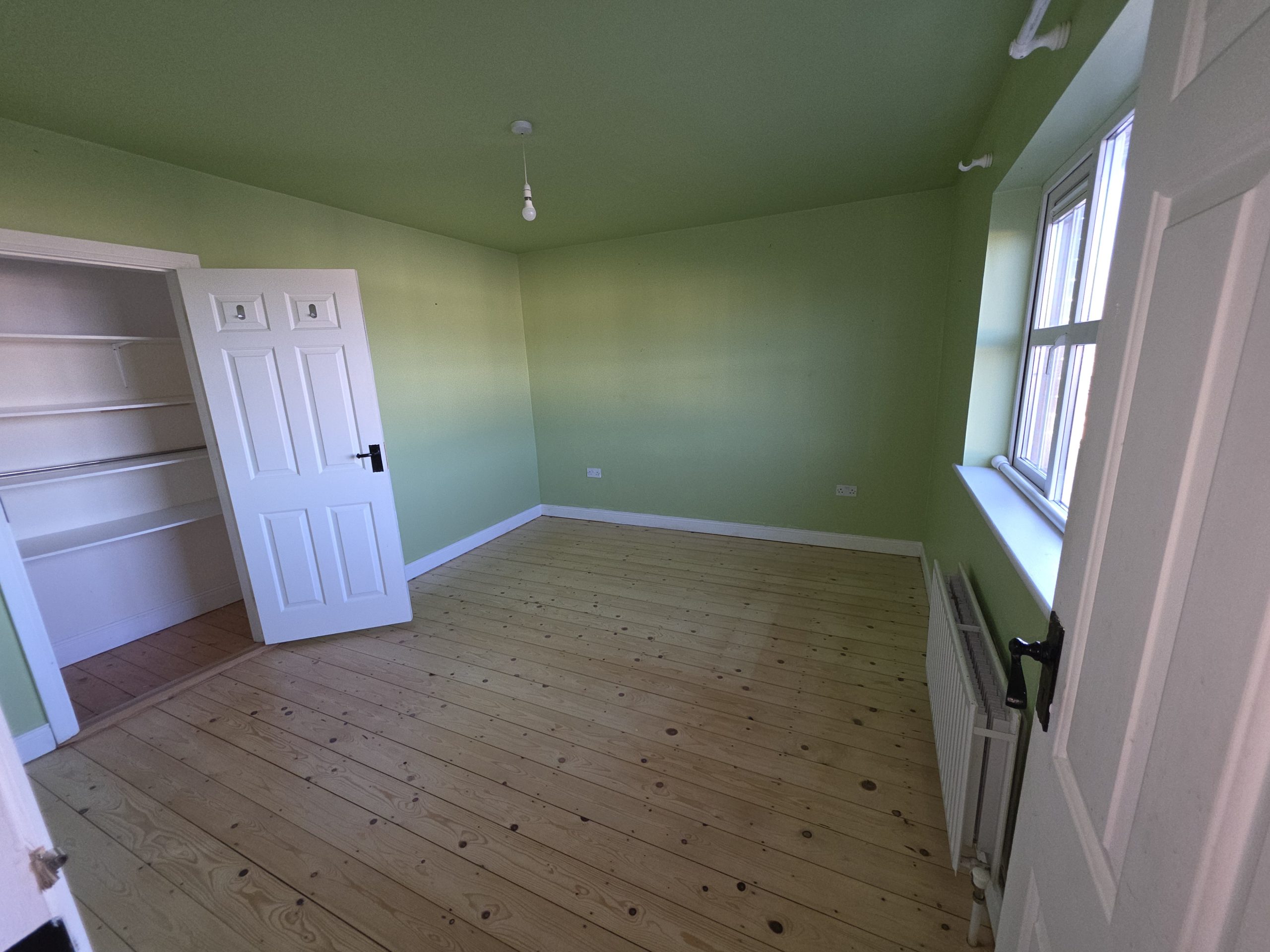 This double bedroom has one centre light piece, tongued and grooved timber flooring, access to a walk-in wardrobe (1.92 x 0.73) one wall-mounted radiator, ample power points and one window overlooking the front of the property.