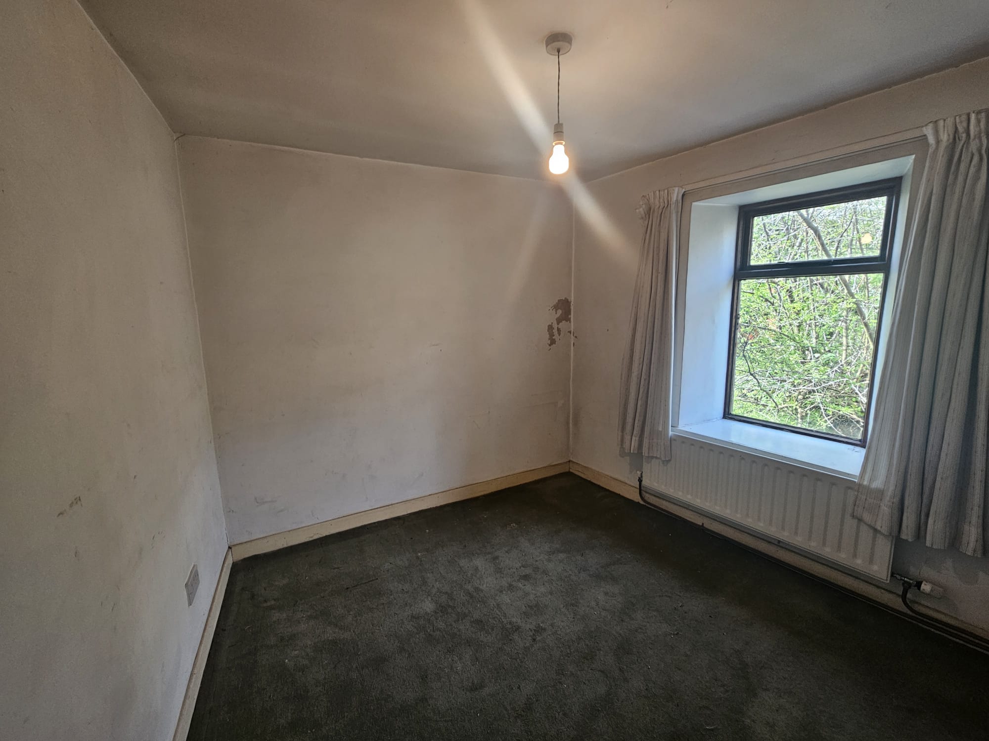 This double bedroom has one window to the rear, carpet flooring, one large radiator, one centre light piece.