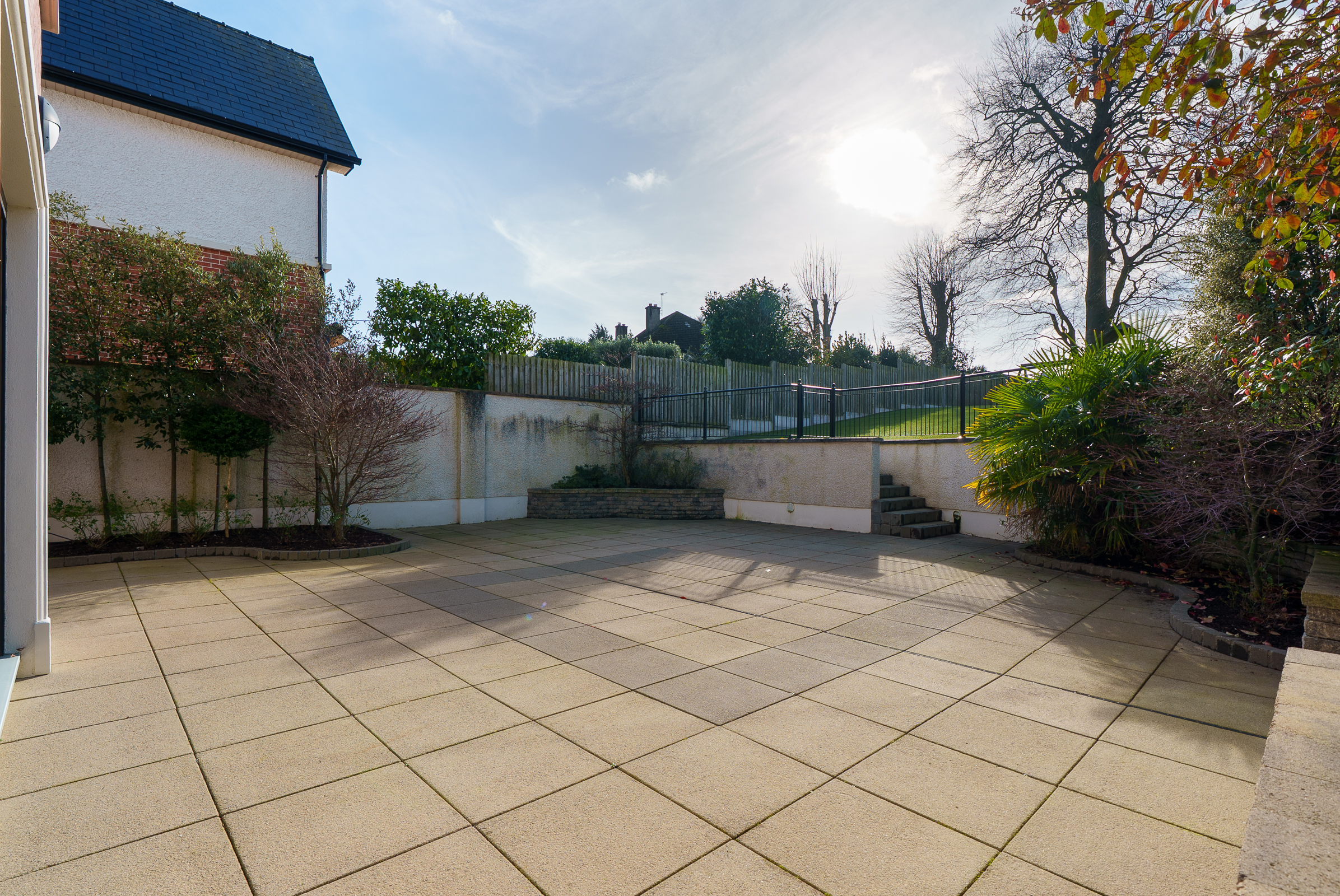 The rear garden offers a large and spacious outdoor patio area and steps lead to a superb maintenance free garden at the back. There is a large mature tree and a steel tech shed neatly positioned in the corner, ideal for storage.