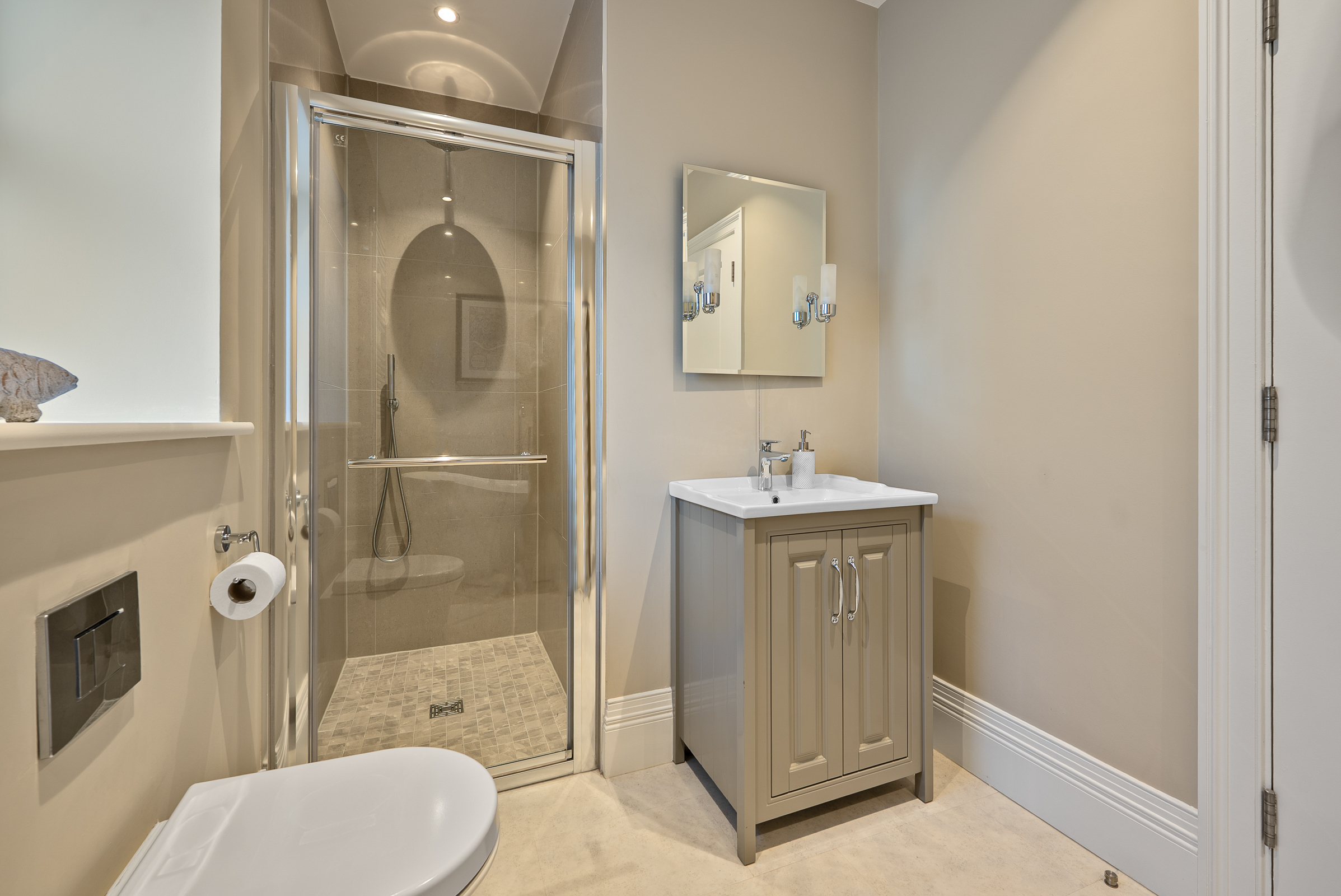 The guest w.c features a two piece suite, a frosted window to the side of the property, centre light fitting, and attractive neutral décor.