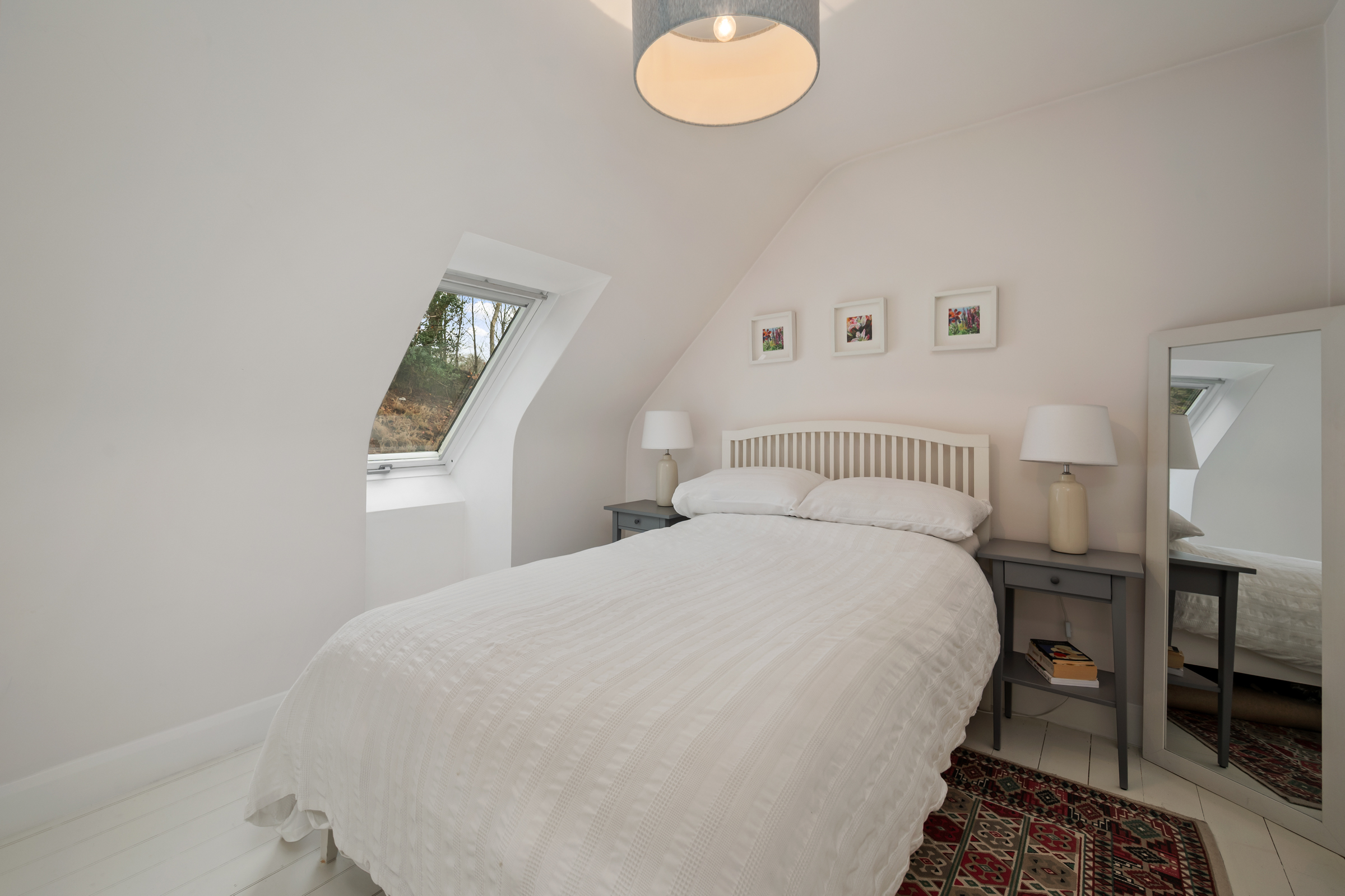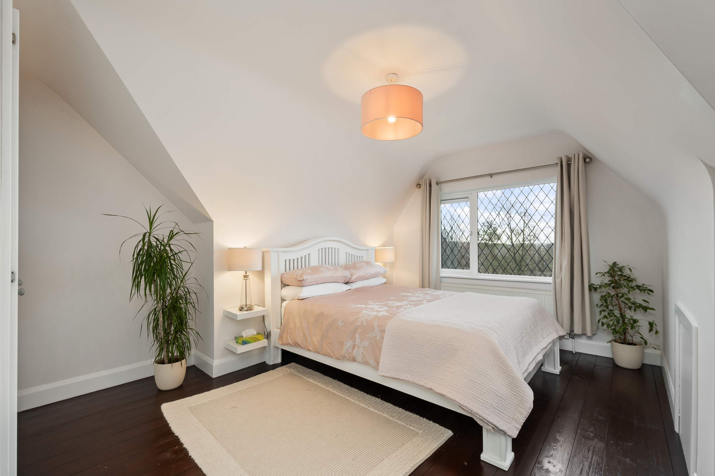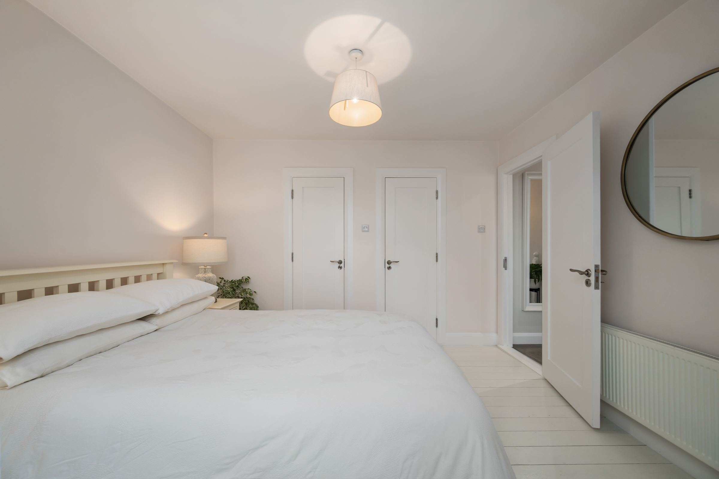 This superb double bedroom has one window to the front of the property, wooden flooring, beautiful décor, one radiator, one centre light fitting, and access to the eaves of the attic. Doors allow access to the en suite bathroom, and the walk-in wardrobe.