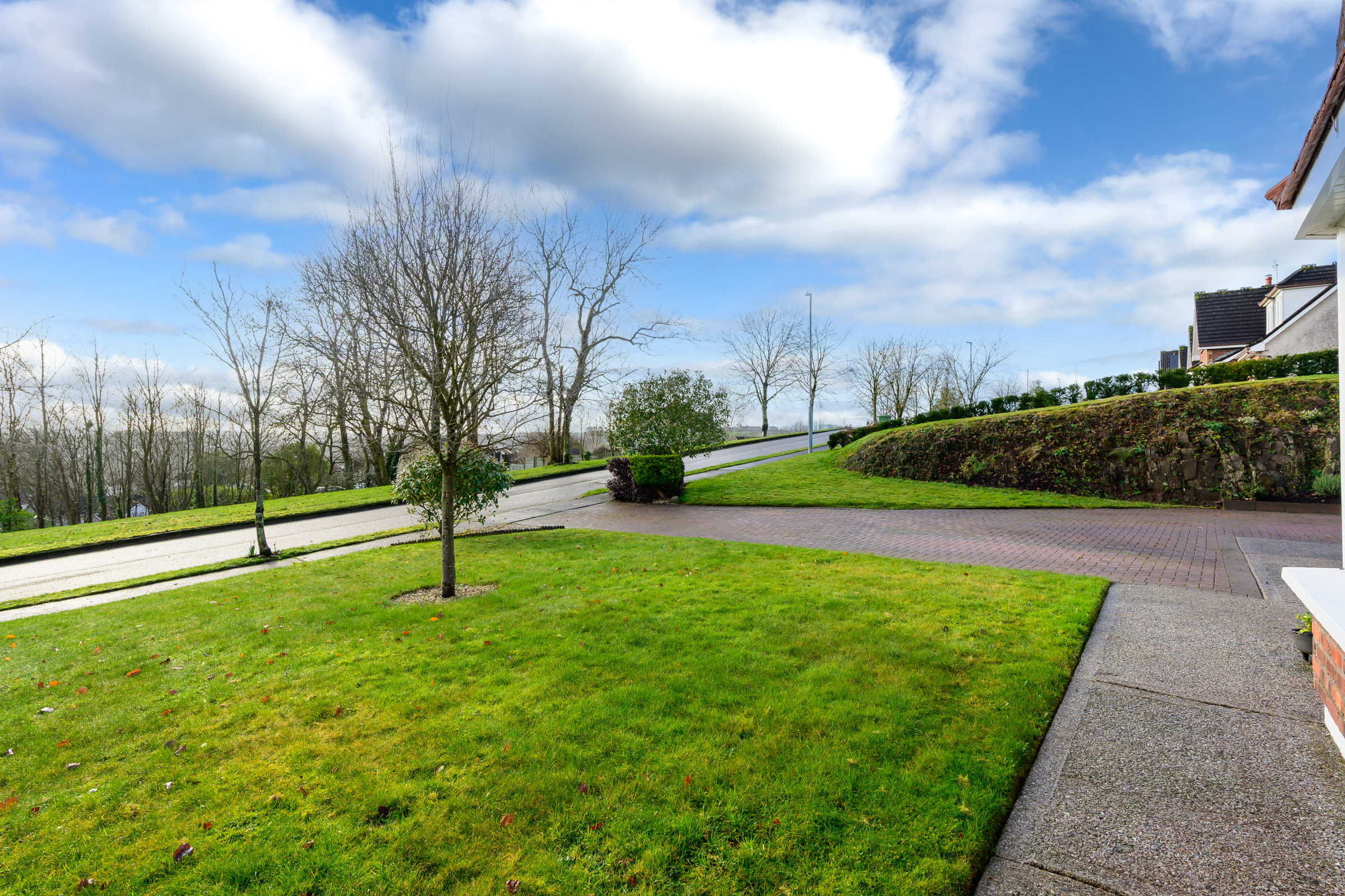 The front of the property has an immaculately maintained garden area which is laid to lawn, with a mixture of mature shrubs and plants throughout. There is a fine driveway to accommodate off street parking for two/three vehicles, and access to a large detached garage.