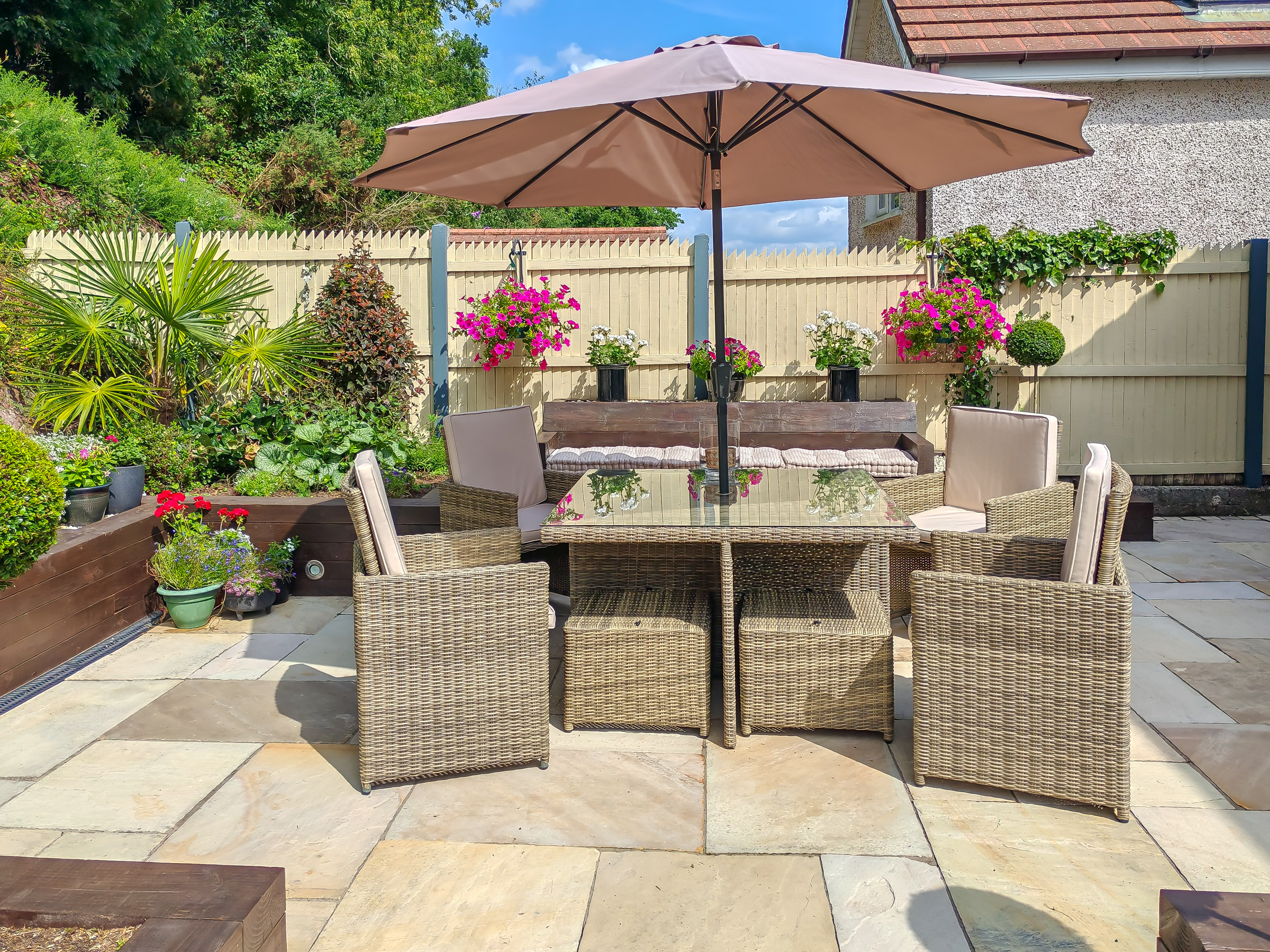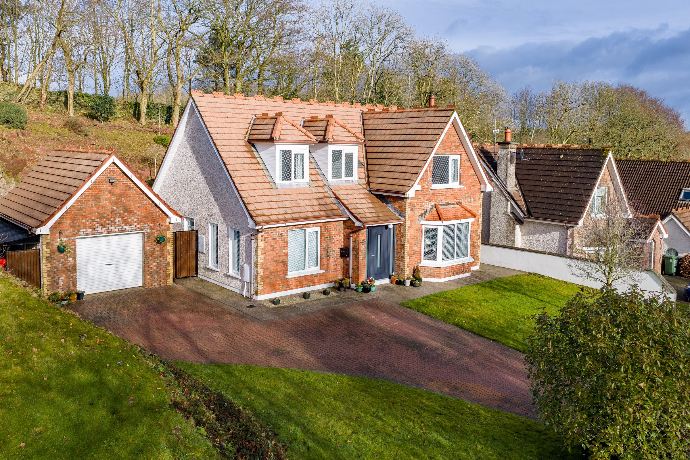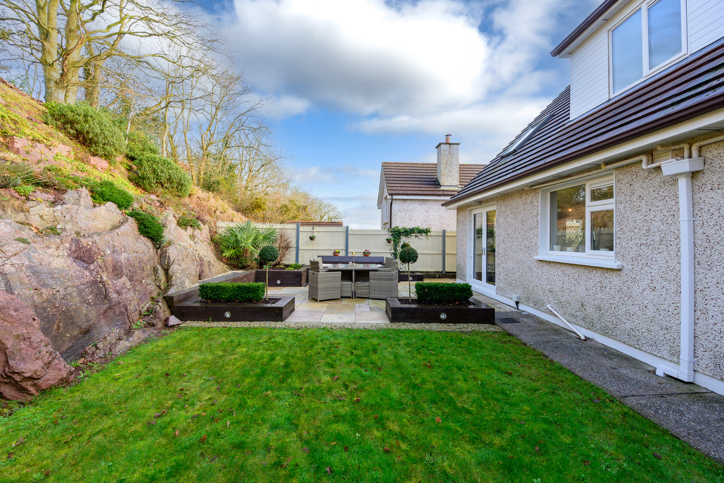 The rear of the property boasts an absolutely beautiful garden space. The area is fully enclosed and very private. There is a magnificent rock feature towards the rear, a superb patio area ideal for outdoor entertaining in the summer, and a well-maintained laid to lawn garden with mature shrubs and plants abounding. There is also access to the detached garage.