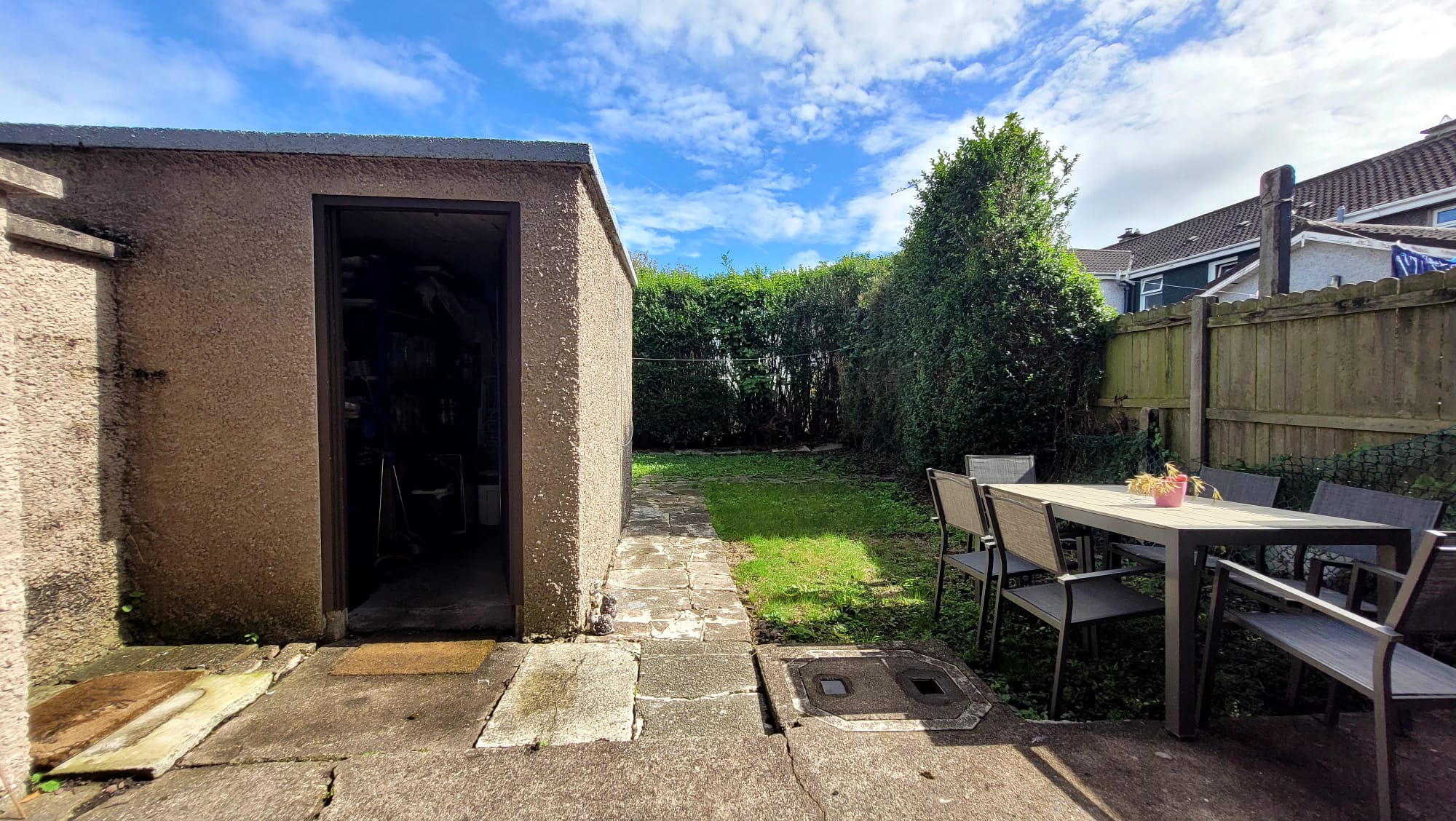 The rear of the property is fully enclosed and not overlooked. There is a garden area which is laid to lawn, and a block built shed with storage space.