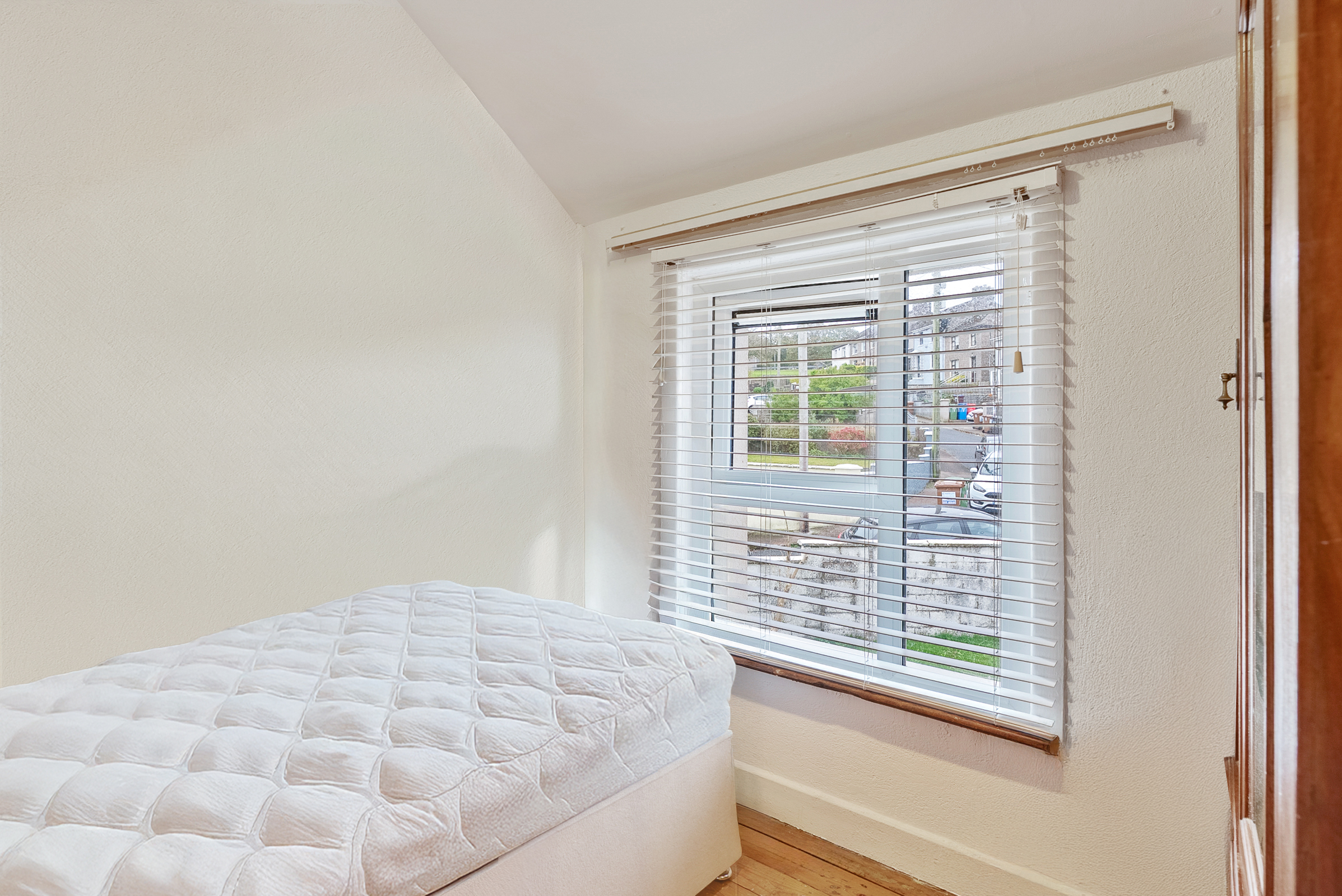 This single bedroom has one window to the front of the property including blinds. The room offers timber flooring, one centre light piece, one radiator, neutral décor, and power points.