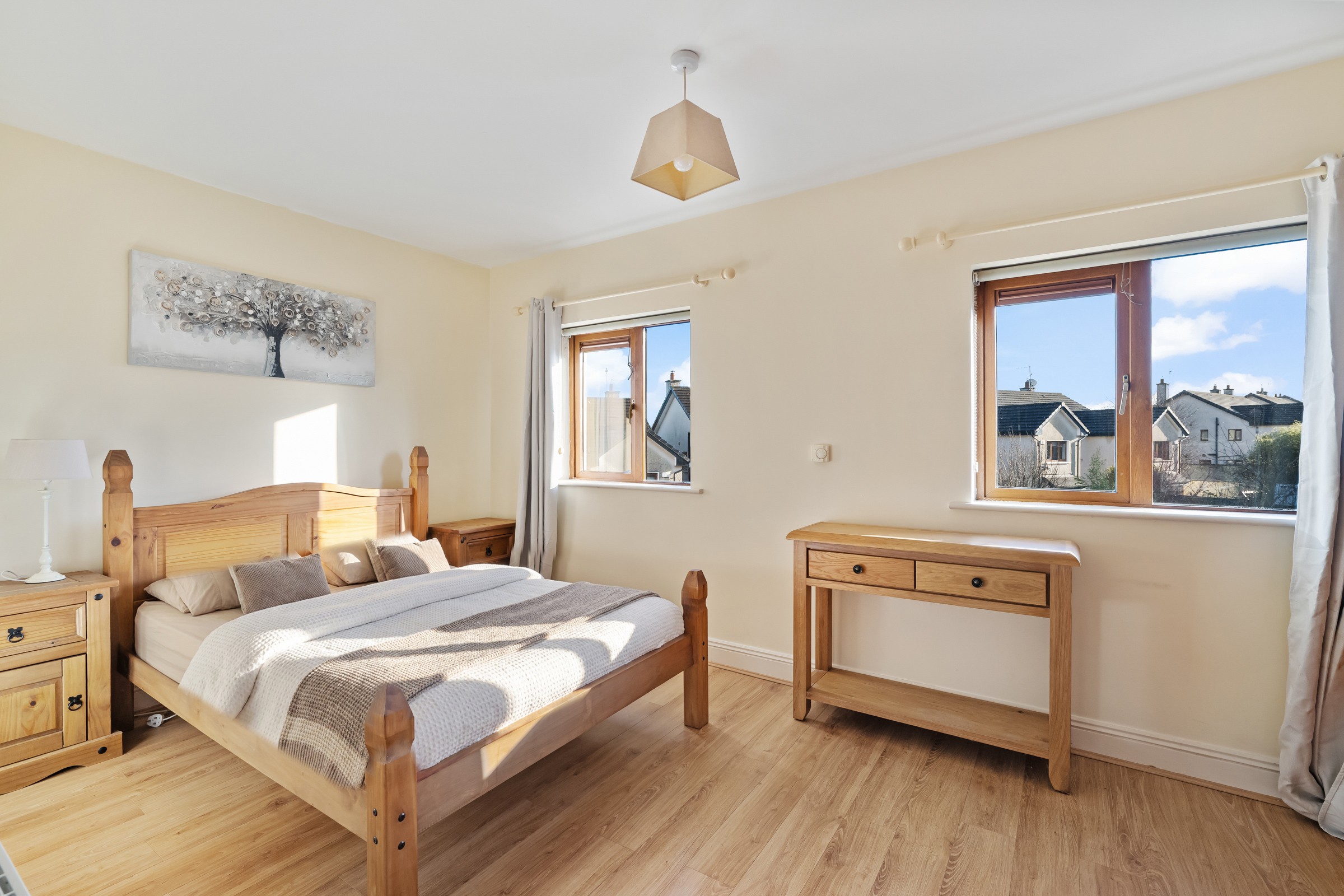 This spacious double bedroom has two windows to the rear of the property, timber flooring, one radiator, plenty of space for wardrobe units, one centre light fitting, one radiator, and neutral décor.