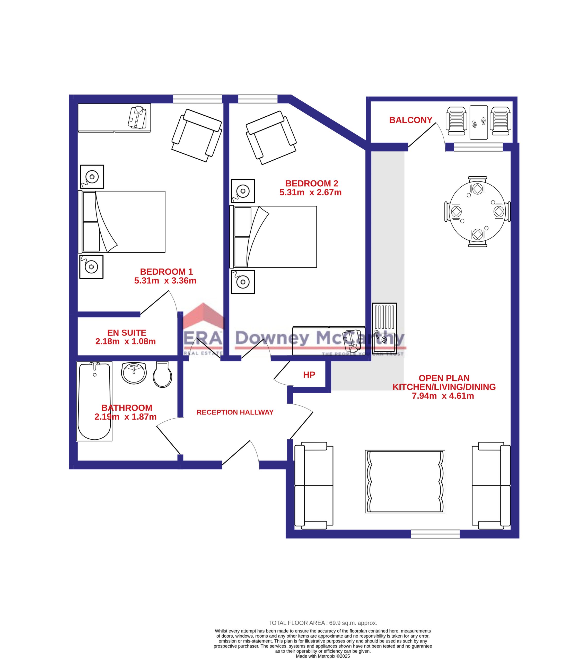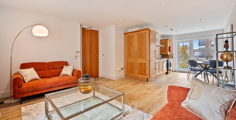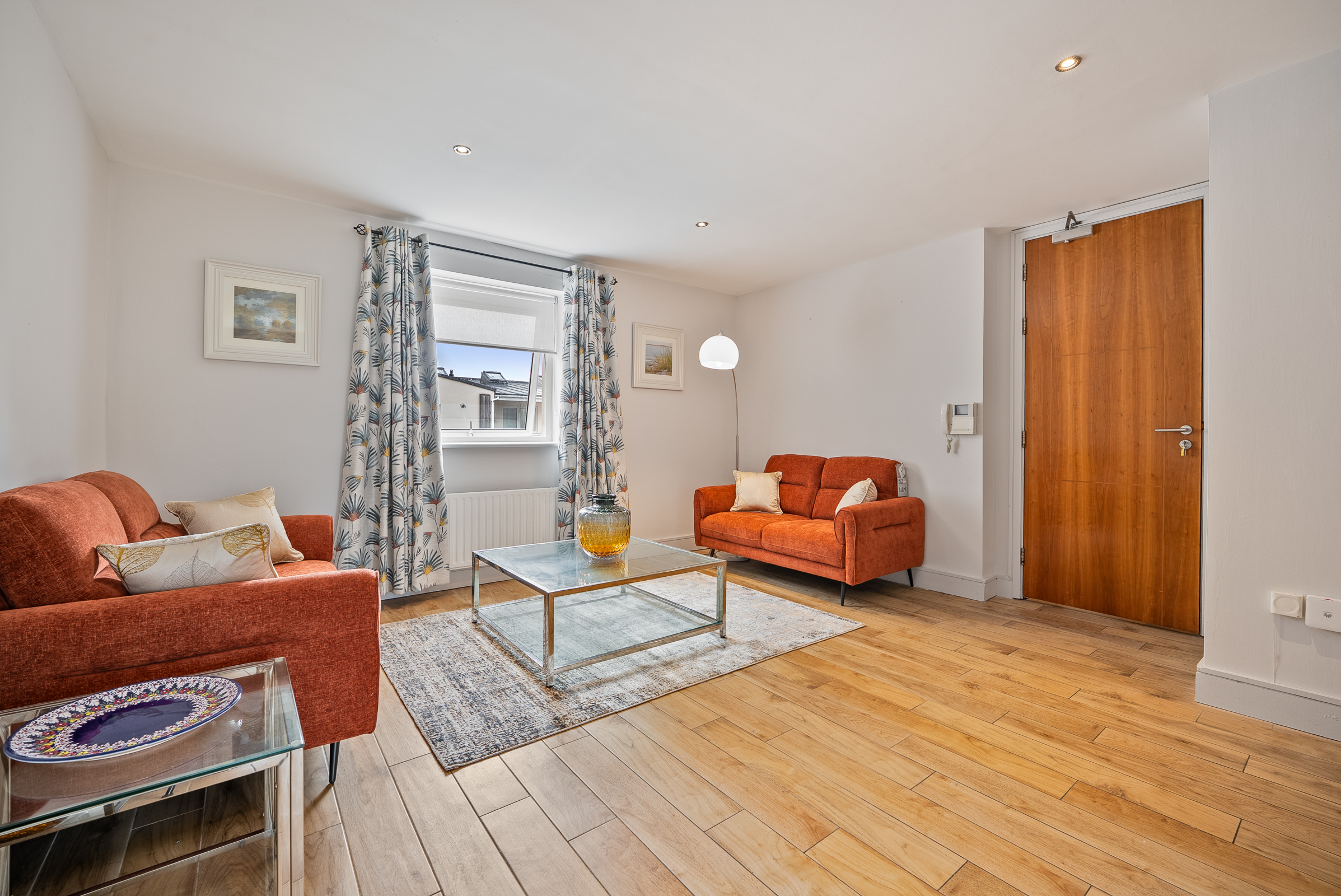 Accommodation consists of reception hallway, spacious open plan kitchen/living/dining area, access to a balcony area, two double bedrooms, and the main family bathroom.