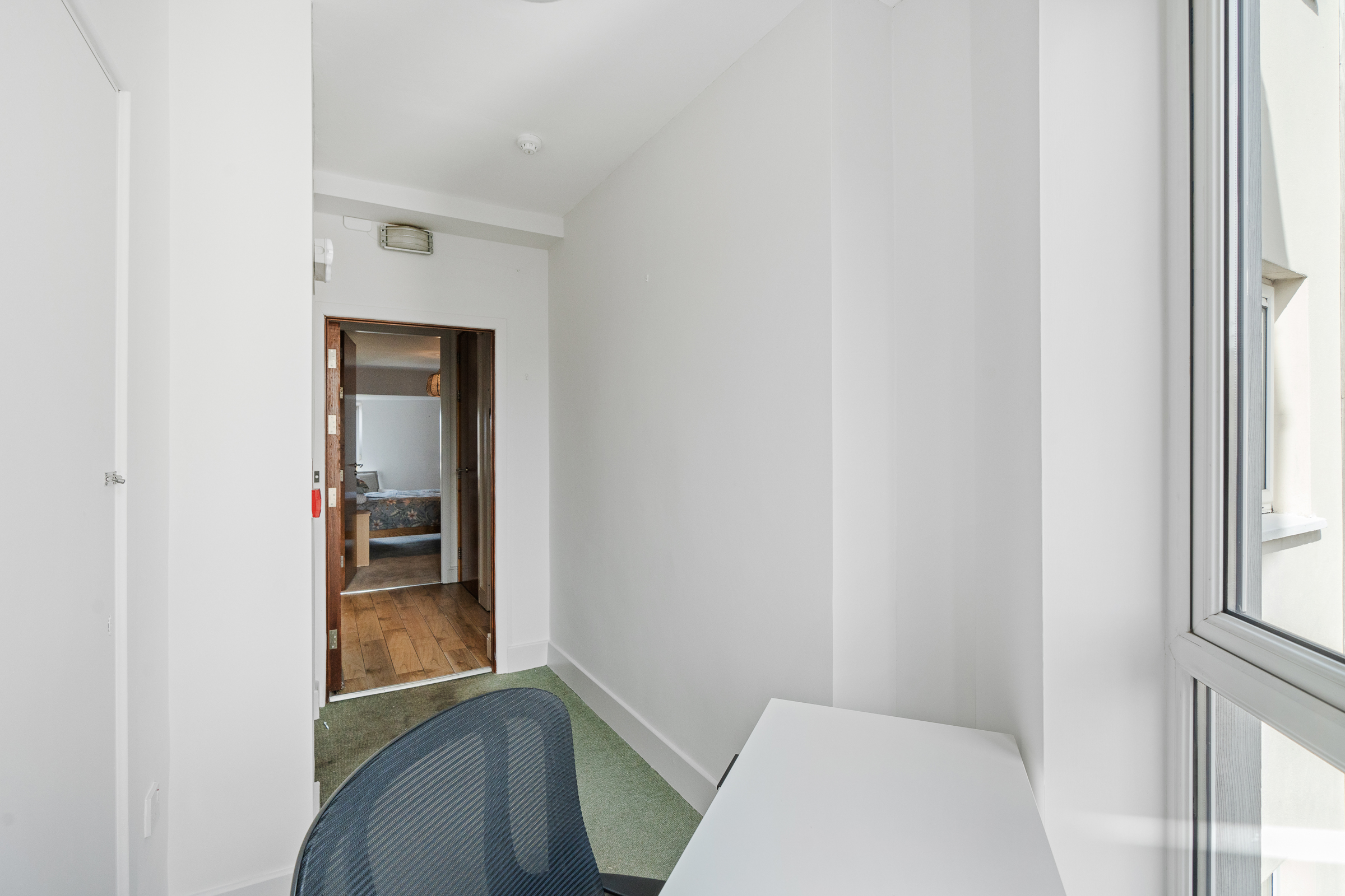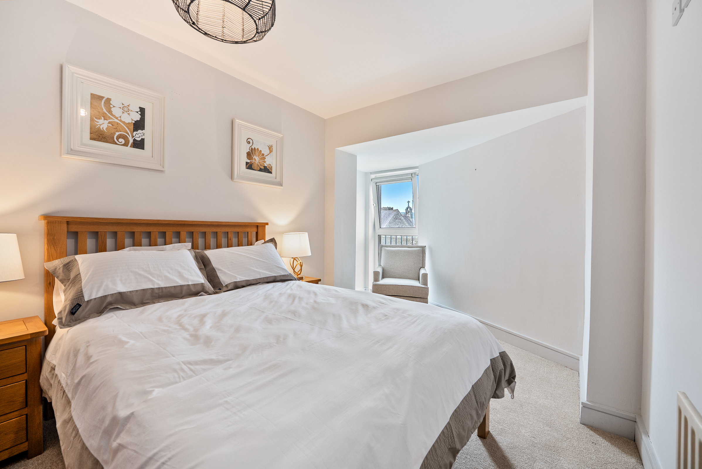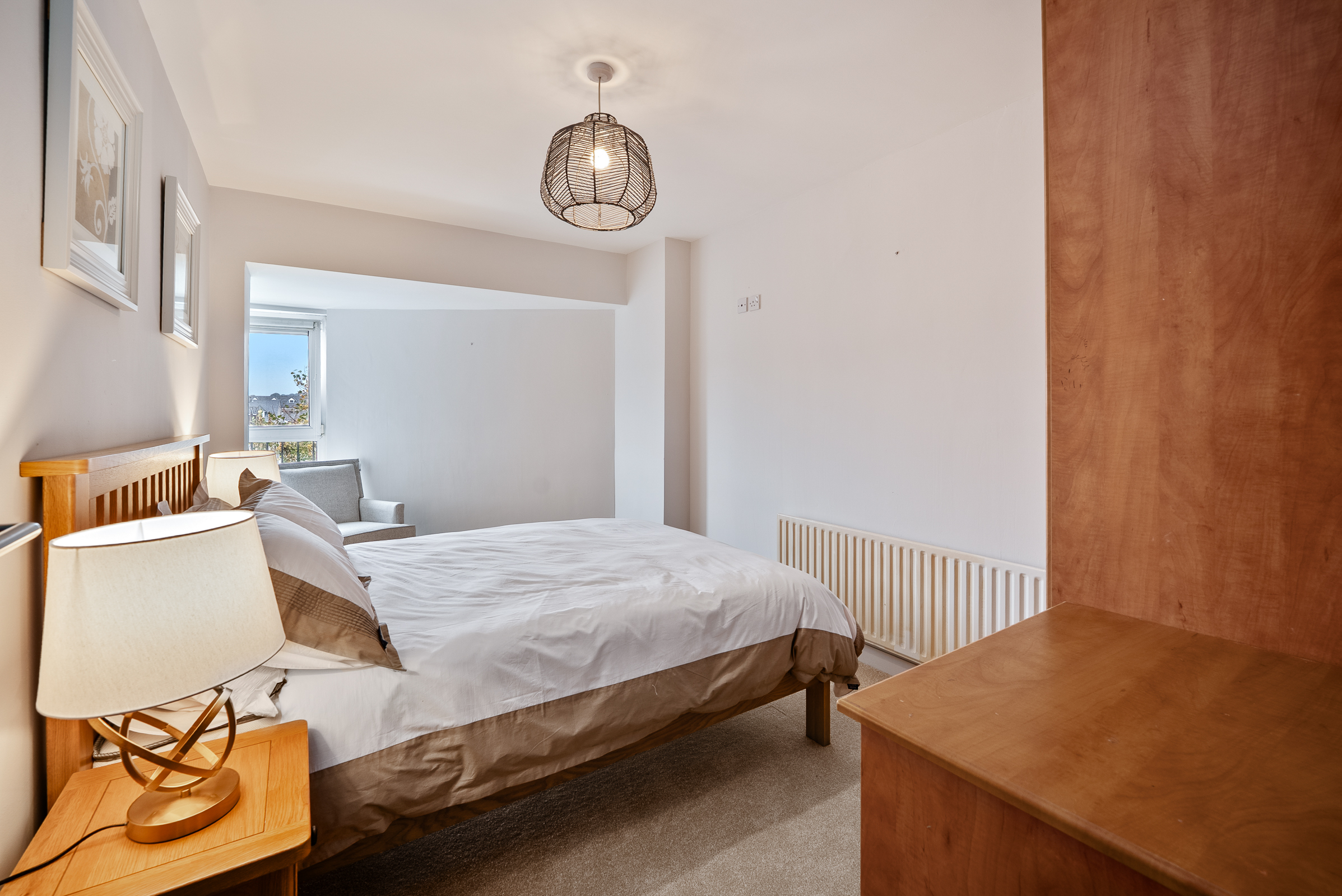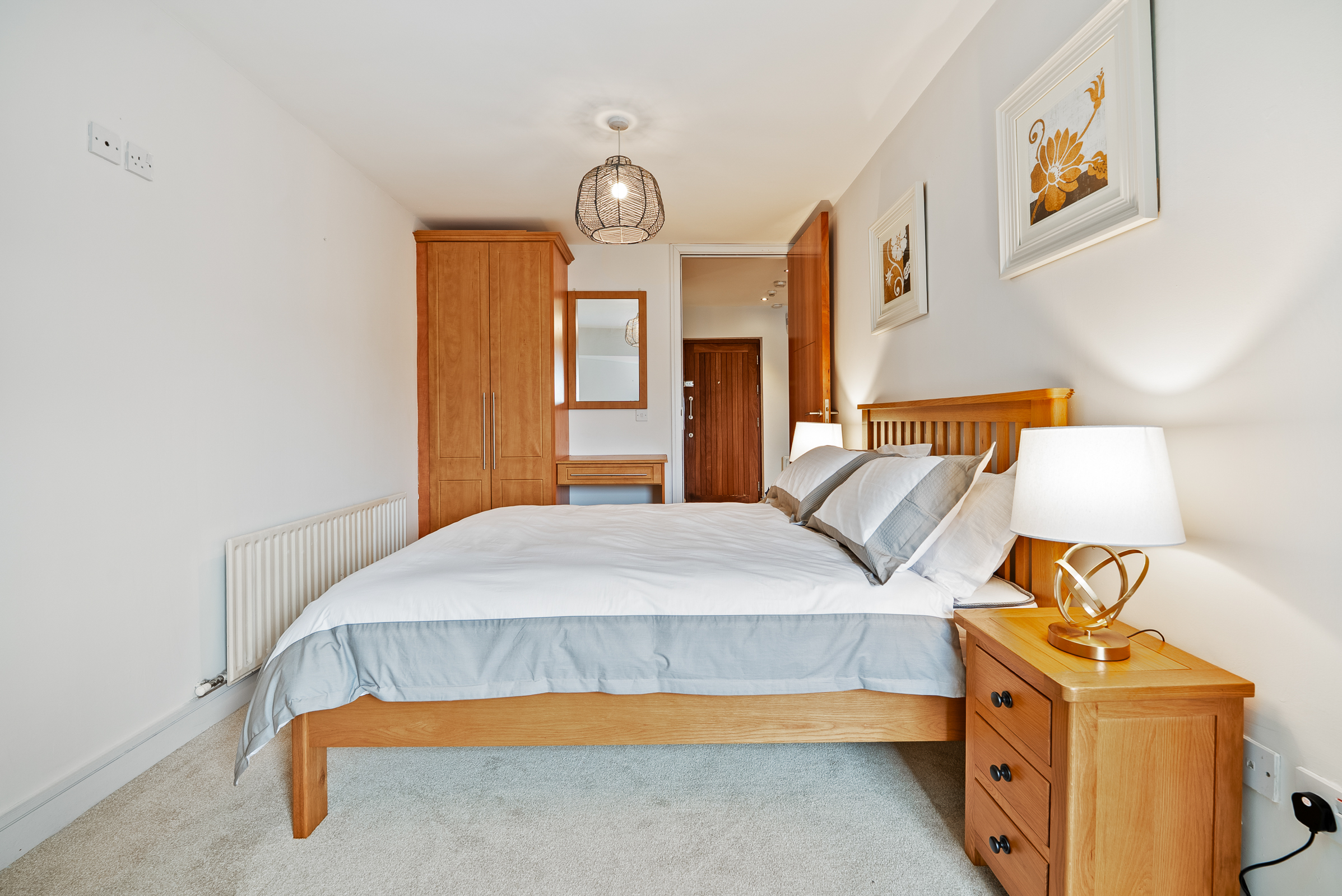 This superb and spacious double bedroom has one large window to the rear of the property, flooding the area with extensive natural light. The area has new carpet flooring, one centre light piece, attractive neutral décor, built-in storage and vanity unit, one large radiator, and ample power points. A door allows access to the en suite.