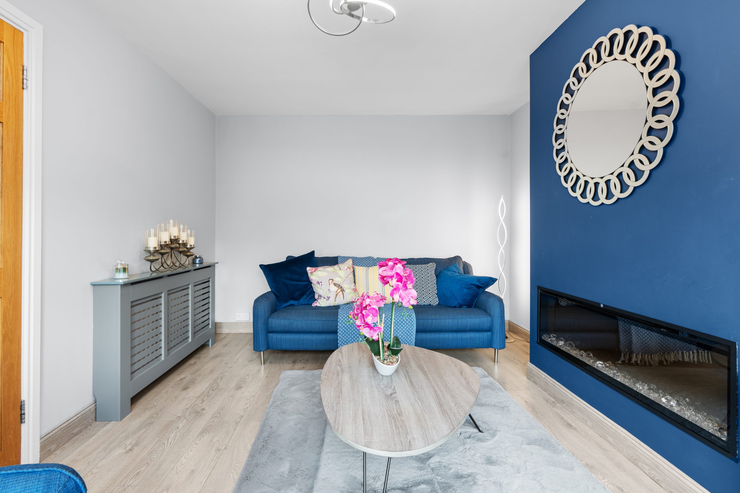 This single bedroom has one window to the front of the property, one centre light piece, laminate flooring, one radiator and an attractive feature wallpaper wall.
