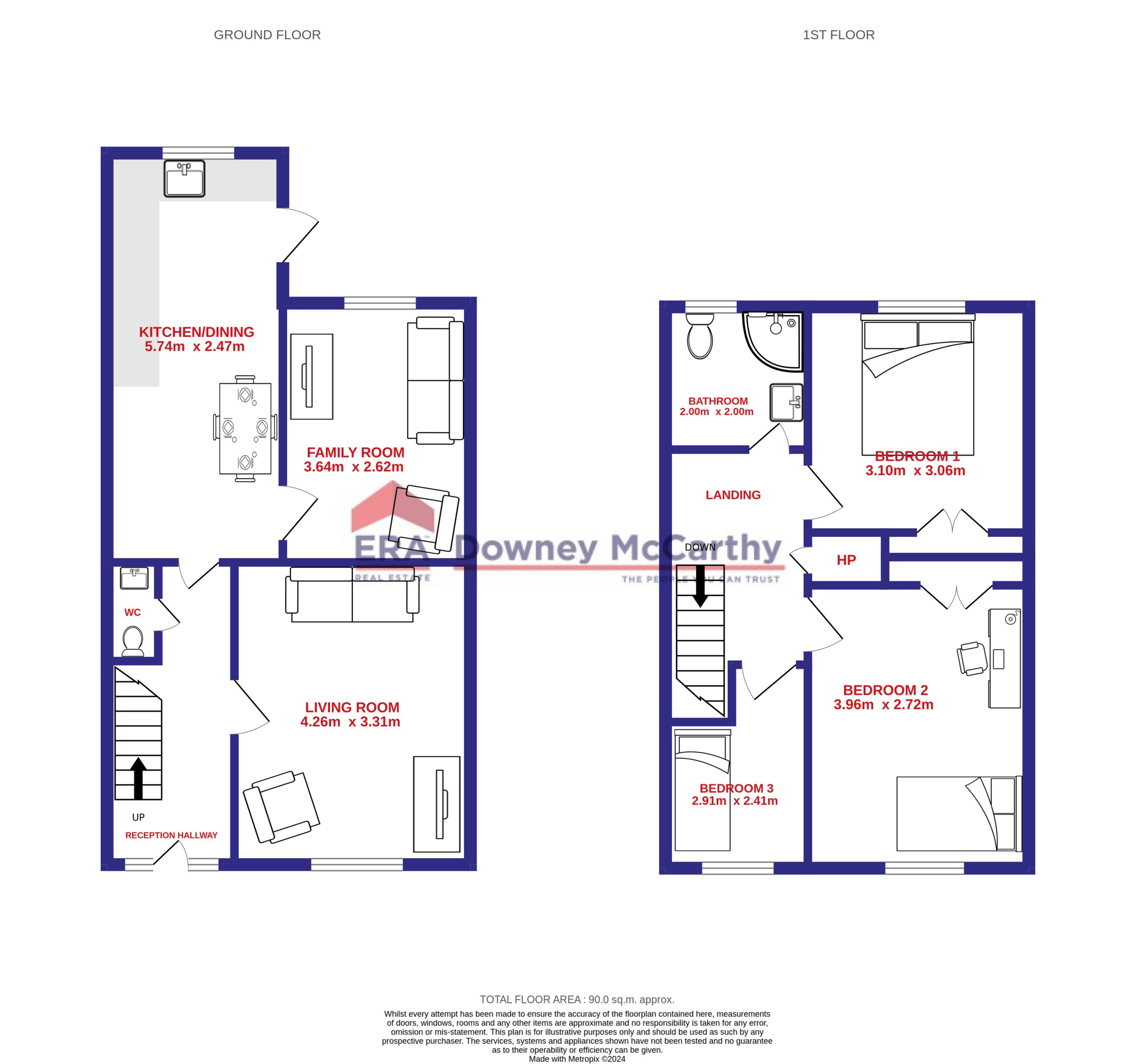 Accommodation consists of reception hallway, guest w.c, living room, kitchen/dining area and family room on the ground floor. Upstairs the property offers three spacious bedrooms and the main family bathroom.