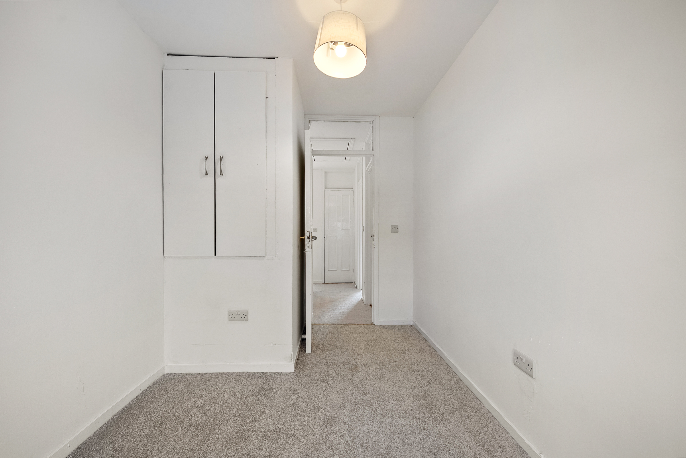This spacious single bedroom has one window to the front of the property, attractive neutral décor, centre light fitting, radiator, built-in wardrobe unit for storage and carpet flooring.