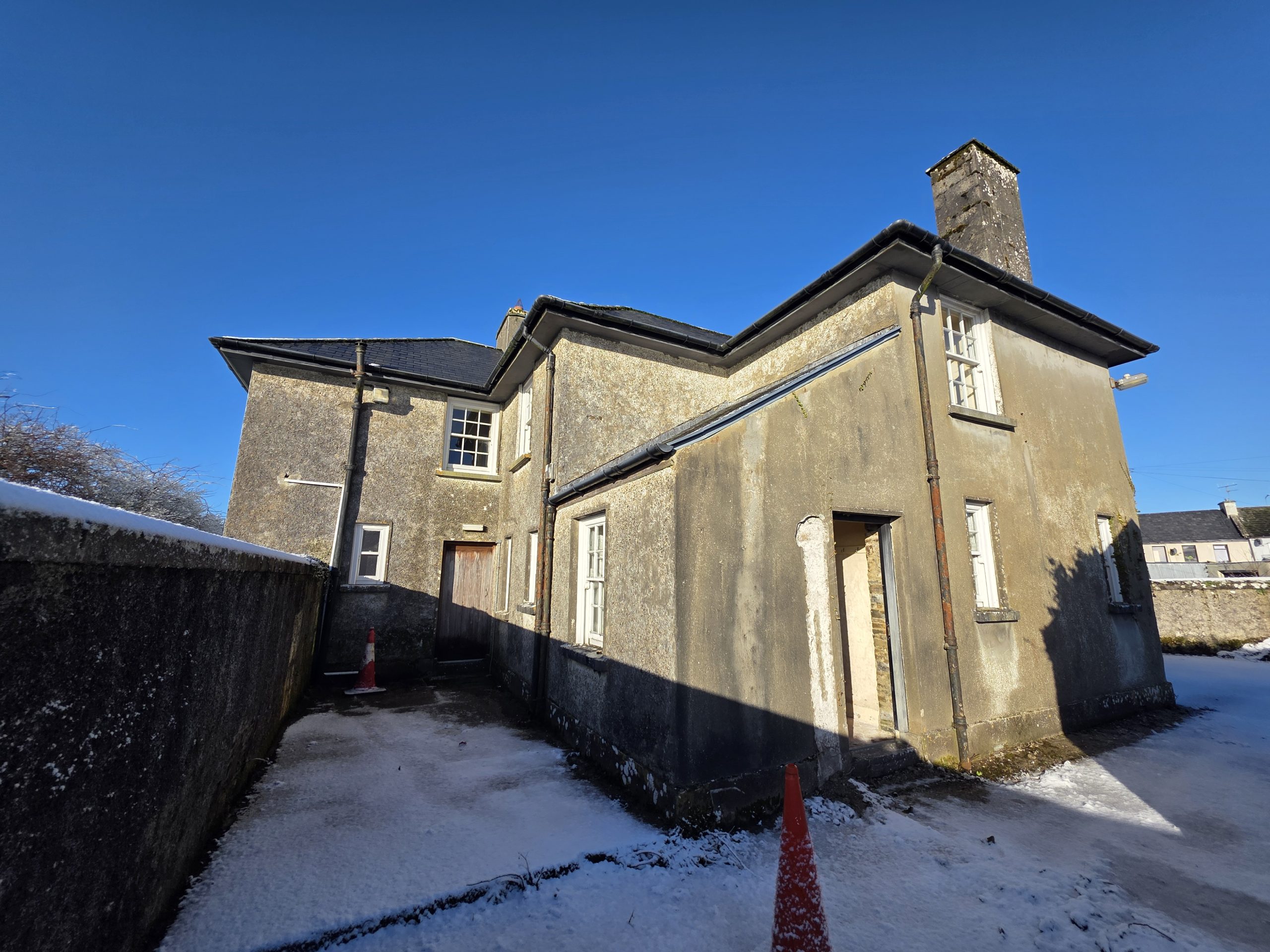 The property comprises a protected, detached, two storey building (former Garda station & residence) on a site of 0.06 Ha. (0.16 acre) approx. Site boundaries are clearly defined and include significant potential garden / patio areas. The building is of traditional construction with dashed and plaster elevations and a pitched, slate covered roof.