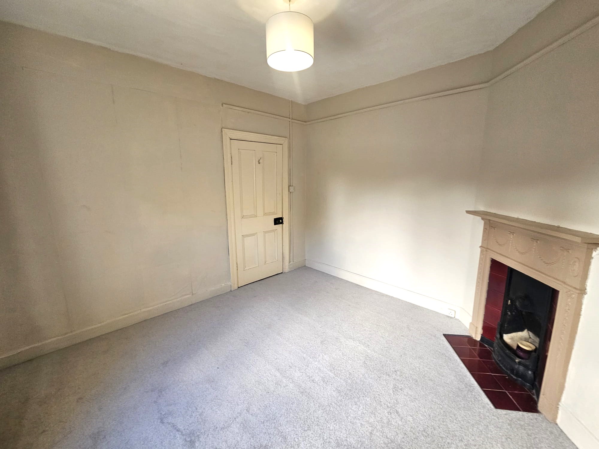 Another double bedroom has one window to the rear of the property, new carpet flooring, a feature fireplace, neutral décor, one centre light piece, one radiator, and three power points.