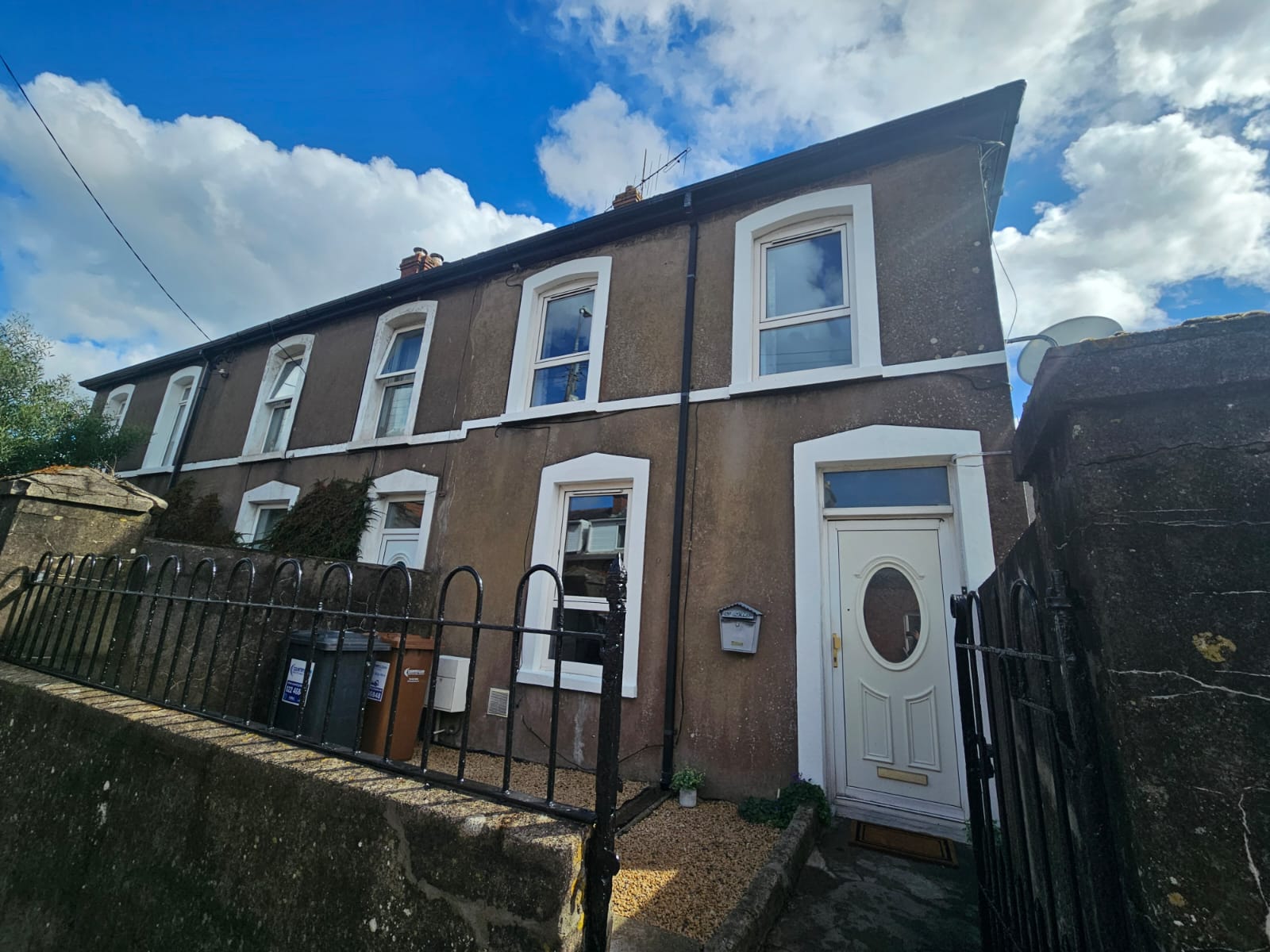 The front of the property is enclosed with block built walls and a cast iron gate. There is a small gravelled yard area with raised rockery and flower beds.