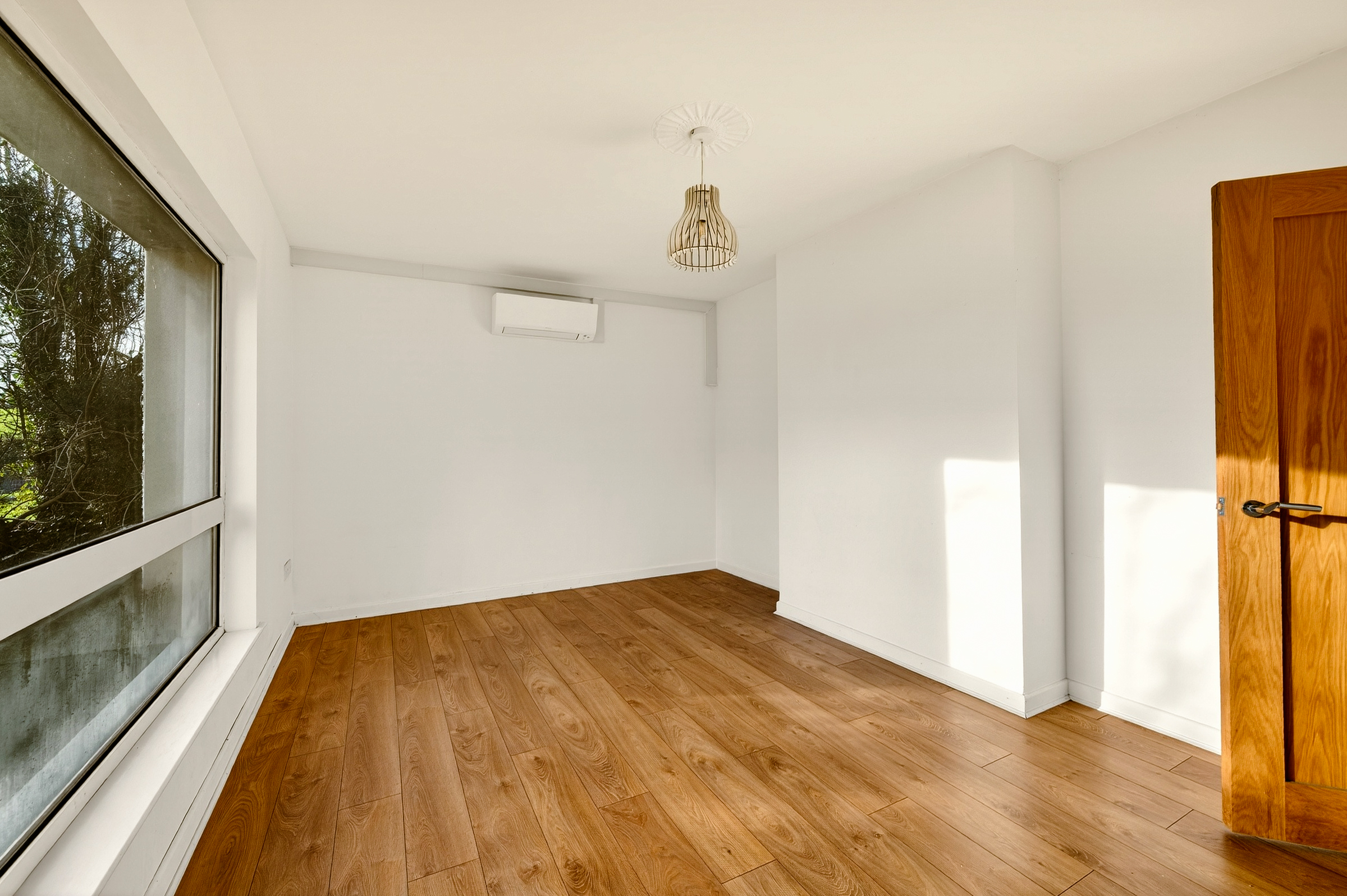The living room has one large window to the front of the property, allowing in extensive natural light. The spacious room has high quality timber flooring, one centre light fitting, neutral décor, under stair storage, and ample power points.