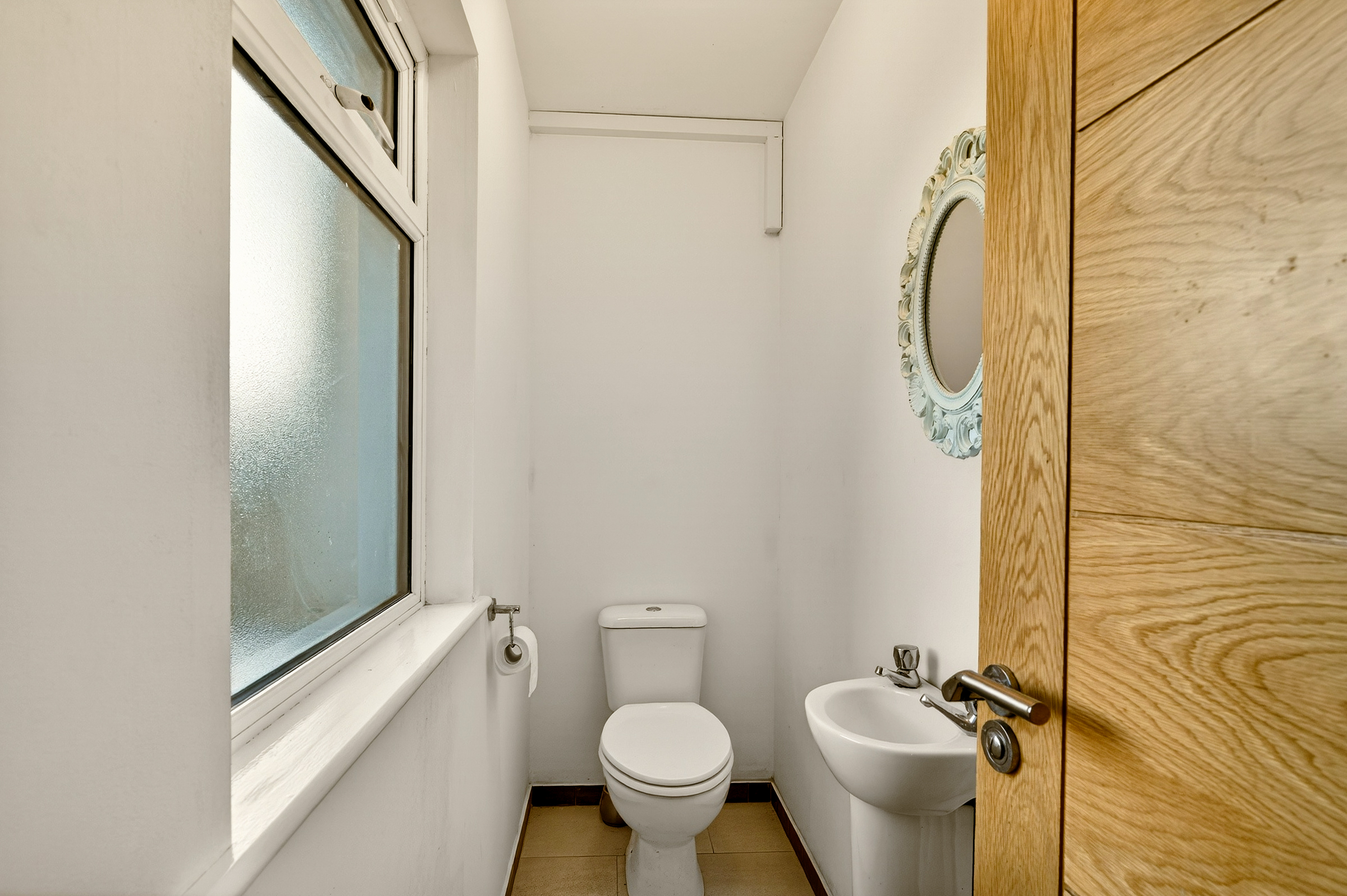 The guest w.c. features a two piece suite, one window to the rear of the property, tile flooring, one centre light fitting.