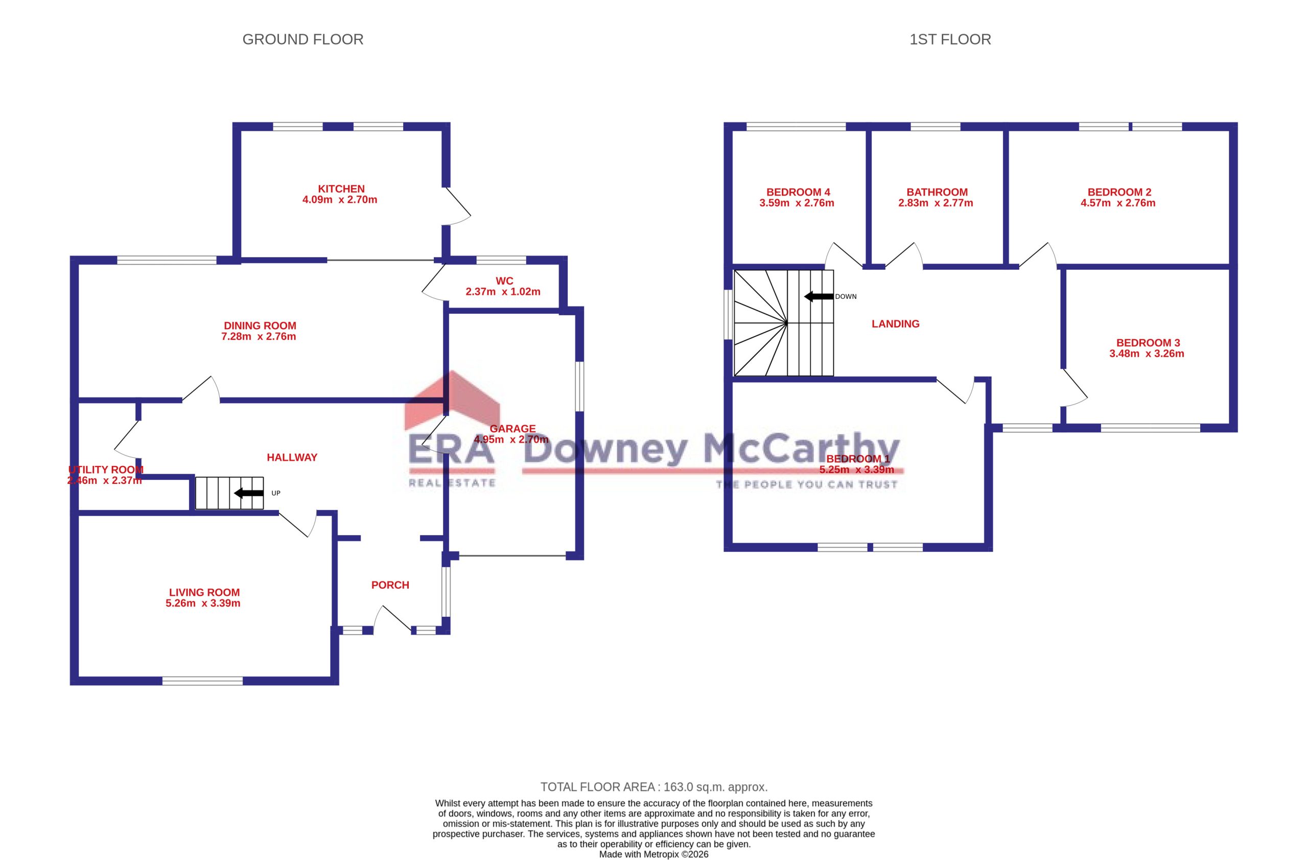 Accommodation consists of porch, reception hallway, living room, open plan dining area and kitchen, guest w.c., utility room and garage all on the ground floor. Upstairs the property offers four spacious double bedrooms and the main family bathroom.